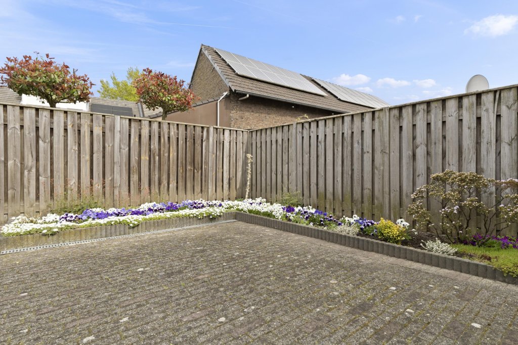 De verzorgde achtertuin met veel privacy beschikt over een terras, zijingang, borders en eigen houten schutting.