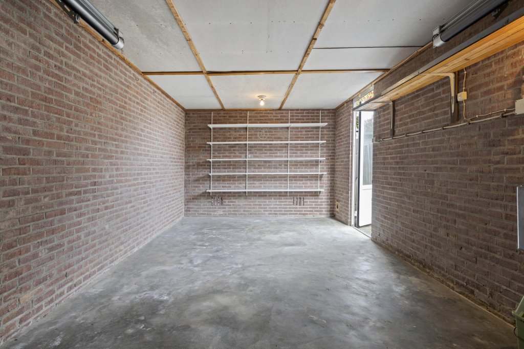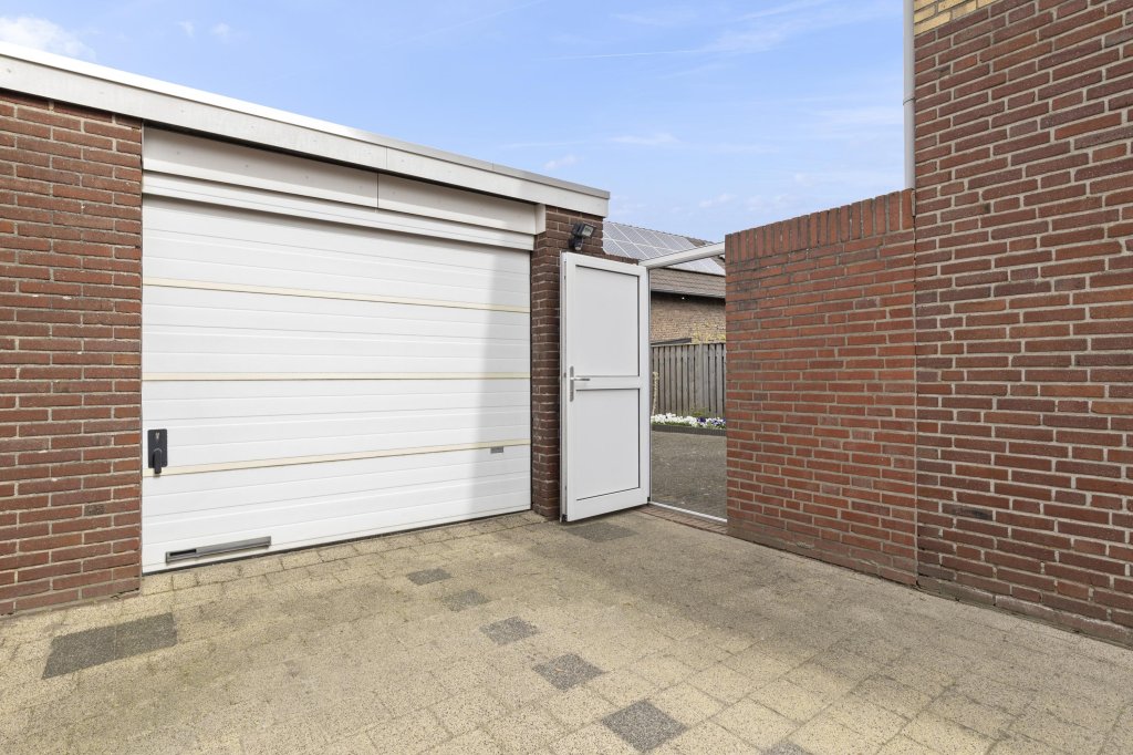 De garage is voorzien van een handmatig bedienbare poort en biedt volop ruimte voor opslag of het stallen van een voertuig. Voor de garage bevindt zich een ruime oprit en is er voldoende openbare parkeergelegenheid.