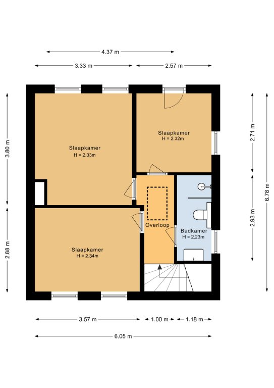 Overloop met toegang tot drie verzorgde slaapkamers, alle voorzien van laminaatvloeren.