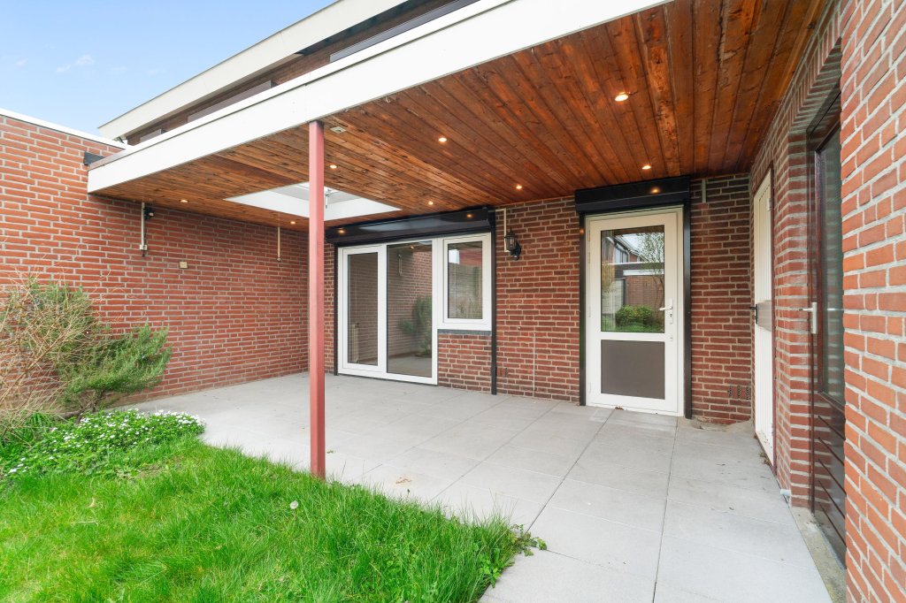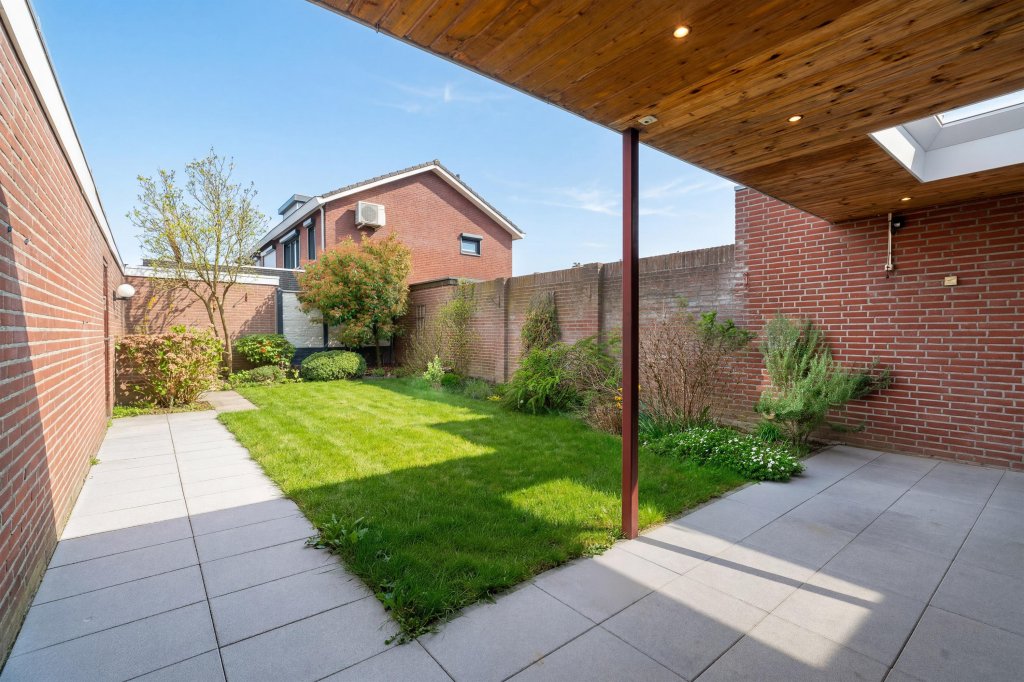 De verzorgde achtertuin biedt volop privacy en is ingericht met een terras onder een overkapping. Tevens is de tuin geheel omsloten en ingericht met gazon en toegang tot garage, een fijne plek om in alle rust te ontspannen.