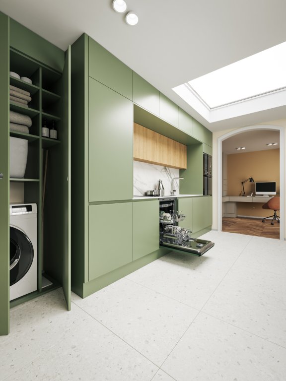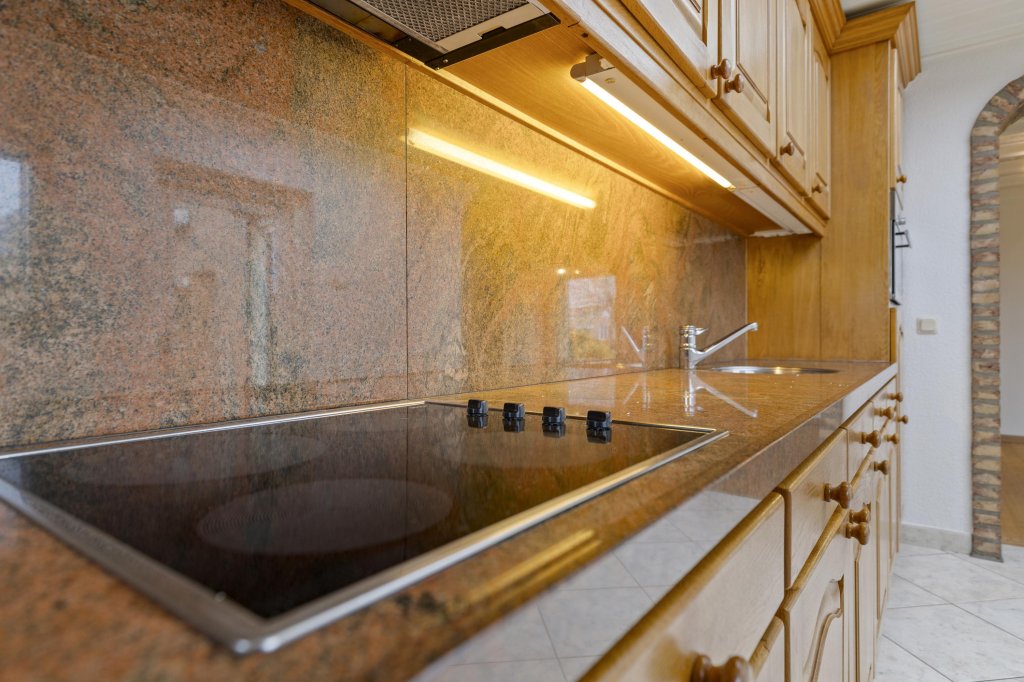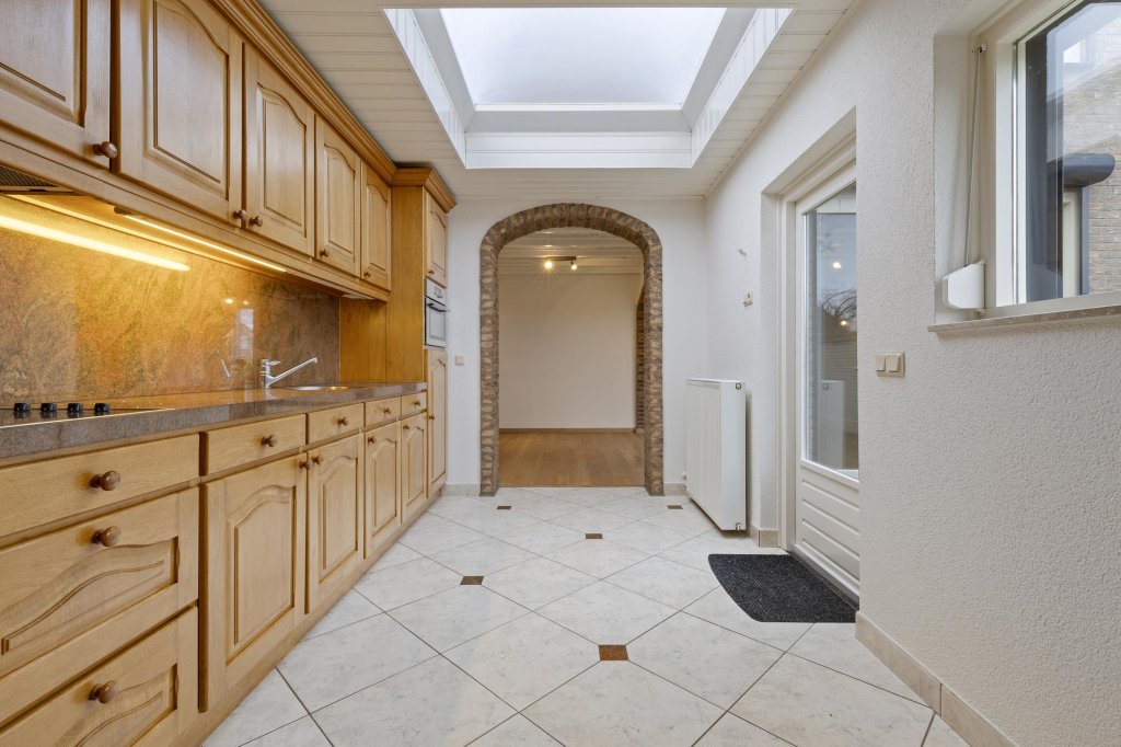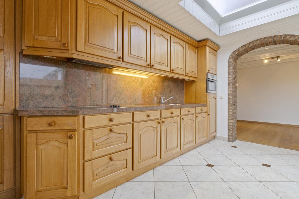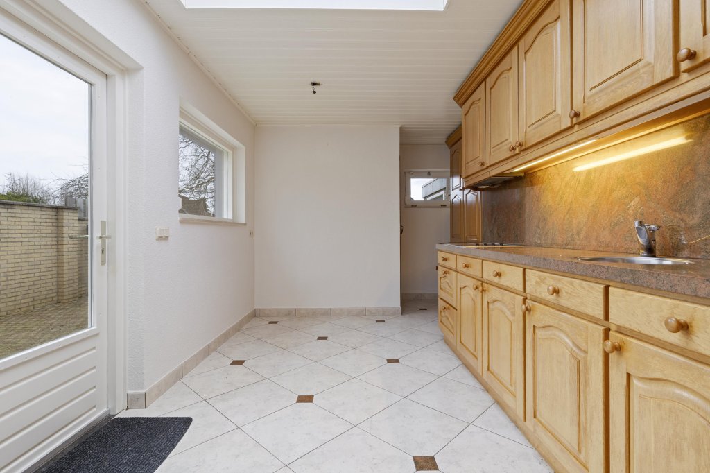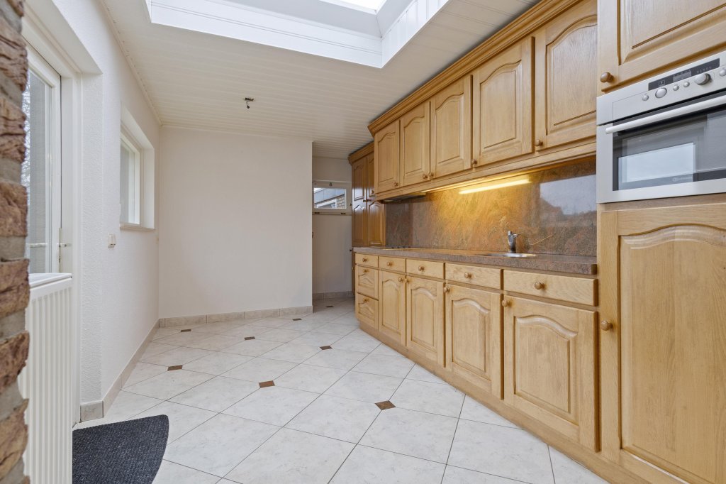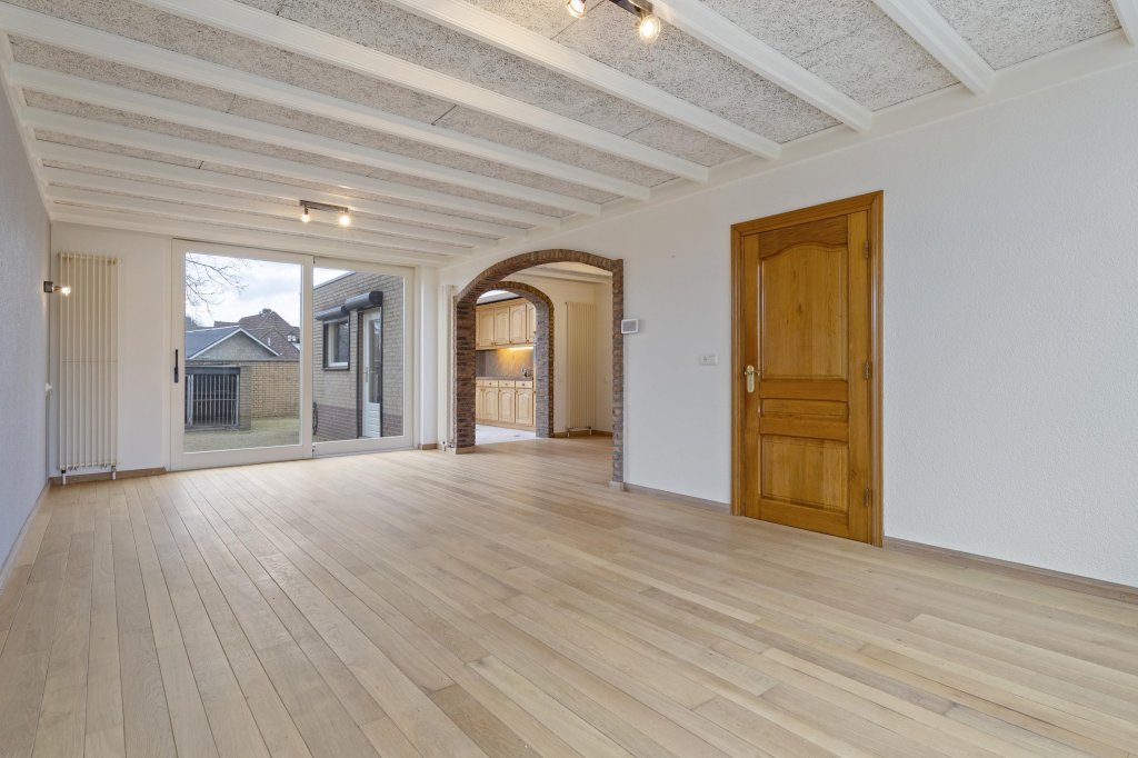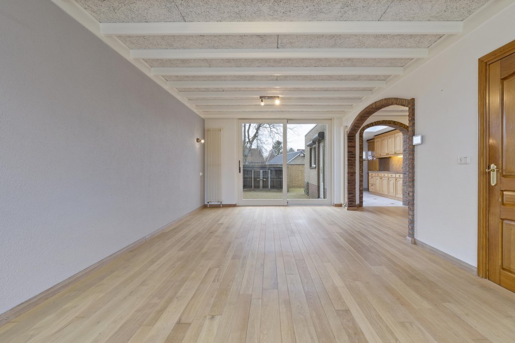 Via de ontvangsthal met meterkast, toiletruimte en trapopgang bereikt u de ruime L-vormige woonkamer. Deze is sfeervol afgewerkt met een houten vloer en biedt prettig tuincontact middels een schuifpui. Aansluitend bevindt zich de open keuken, uitgerust met een degelijke en nette aanbouwkeuken met veel bergruimte en diverse inbouwapparatuur.