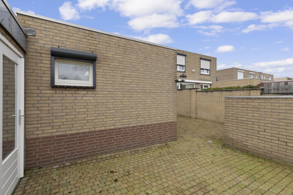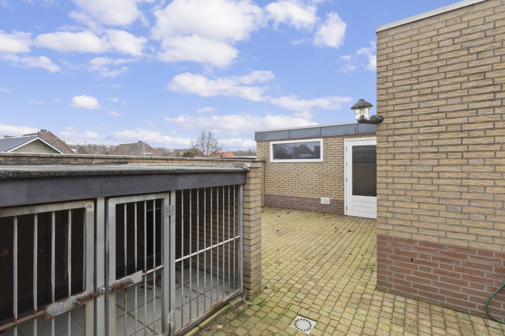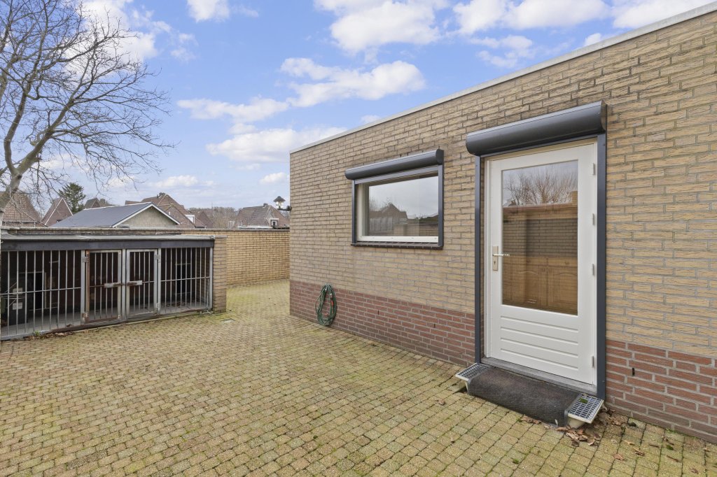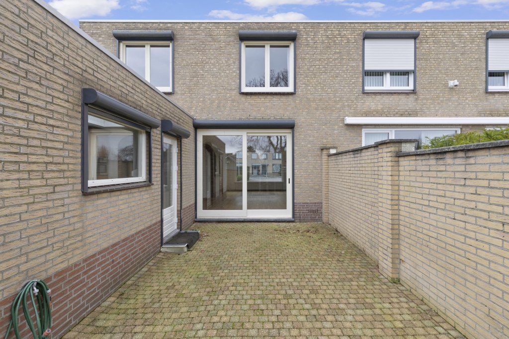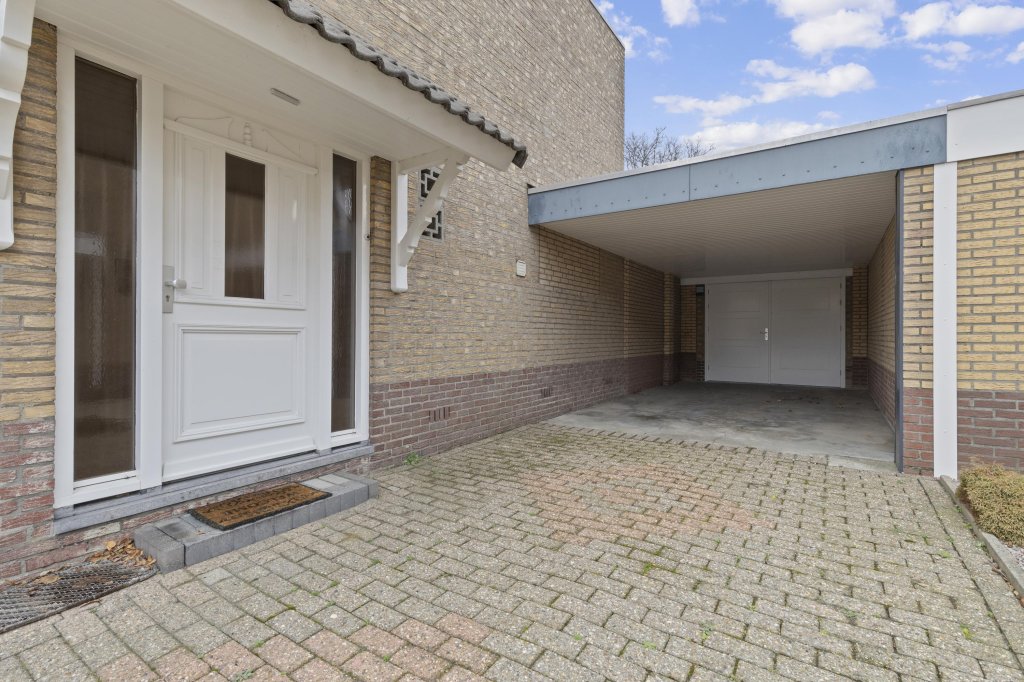 De geheel omsloten tuin is onderhoudsarm aangelegd en biedt toegang tot de garage. Aan de voorzijde beschikt de woning over een ruime eigen oprit met aansluitend een carport, waardoor parkeergelegenheid op eigen terrein ruimschoots aanwezig is.