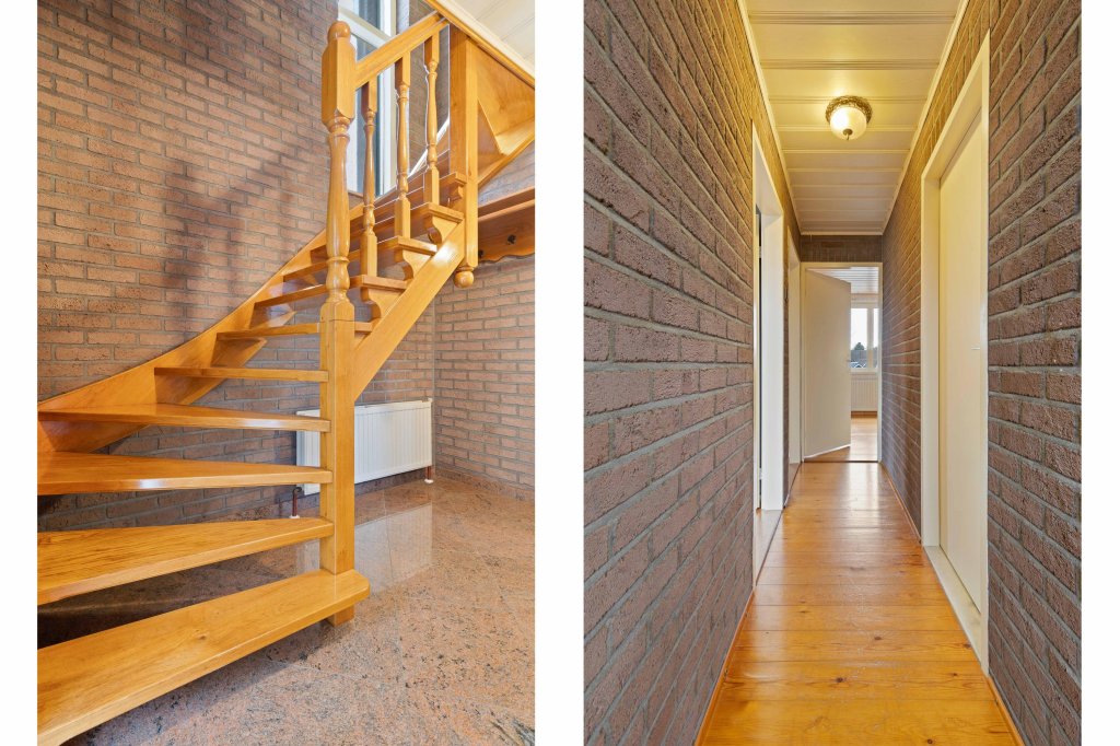 De overloop biedt toegang tot drie ruime slaapkamers en de badkamer.