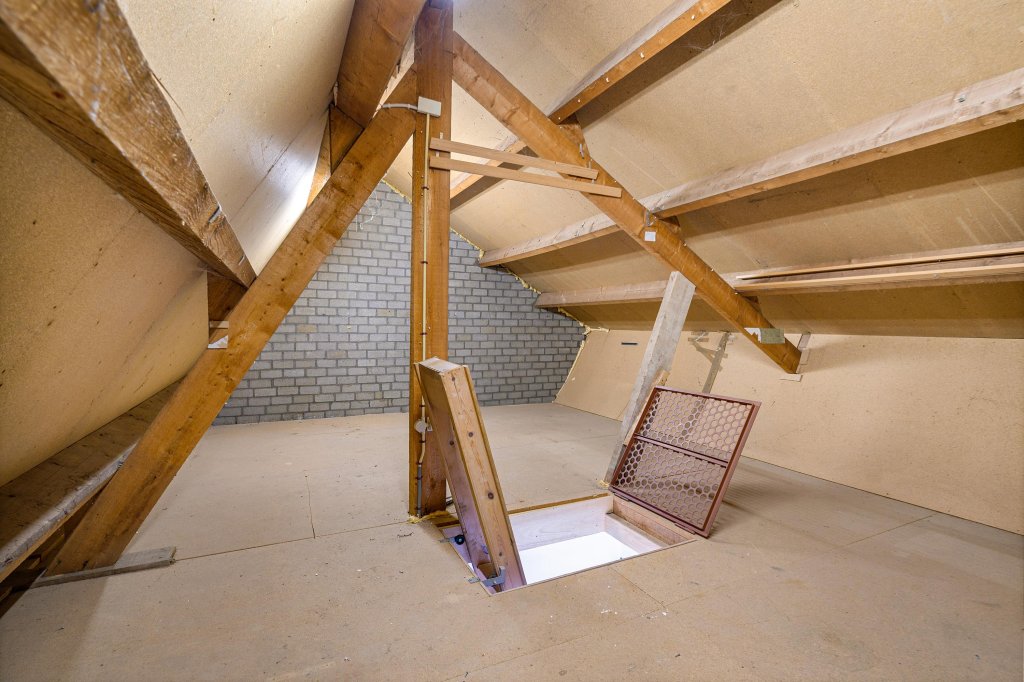 Via een vlizotrap is de riante bergzolder bereikbaar. Hier heeft men de mogelijkheid tot het realiseren van twee slaapkamers.