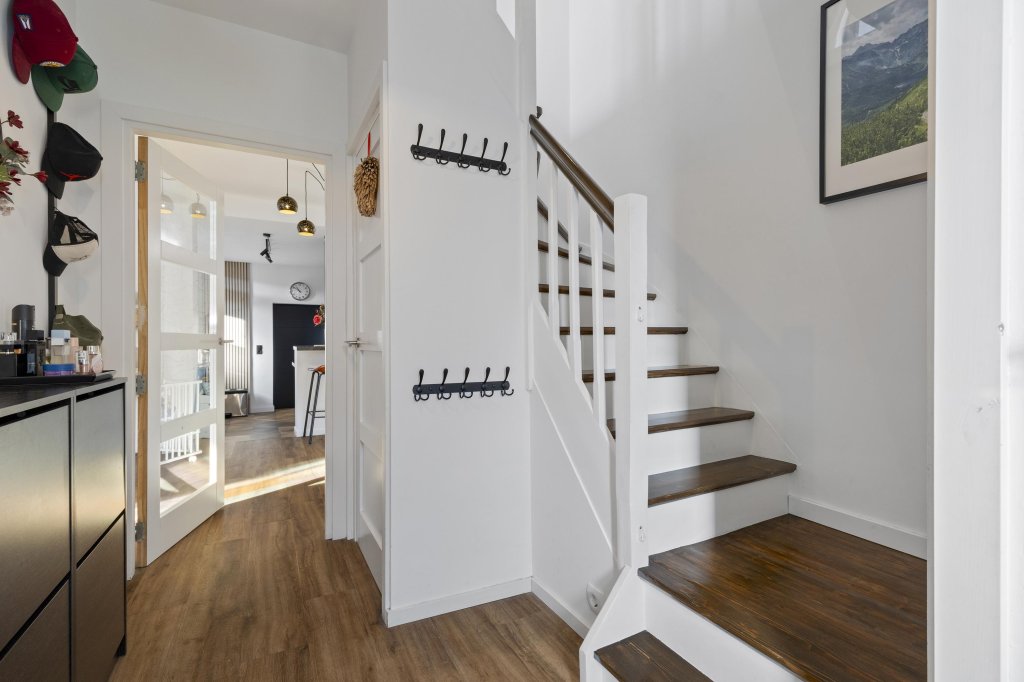 Hal met moderne laminaatvloer, vernieuwde meterkast met 10 groepen en glasvezelaansluiting.