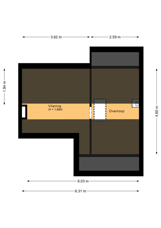 Via een vlizotrap bereikbare bergzolder met een hoogte van ca. 1,73 m, perfect voor extra opslag.