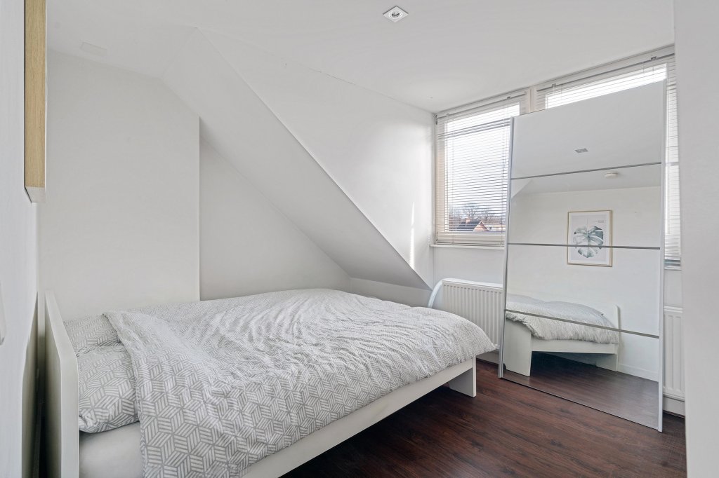 Via de overloop bereikt u de slaapkamer (ca. 3.40 x 2.80 m). De kamer is goed in te richten en biedt voldoende ruimte voor een tweepersoonsbed en kastruimte. Een rustige en functionele plek om te ontspannen.