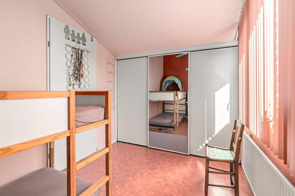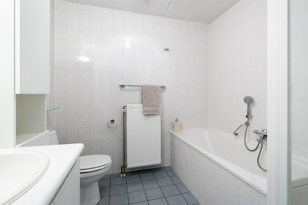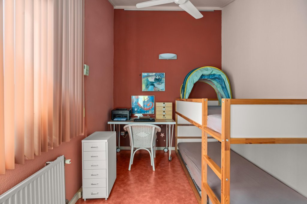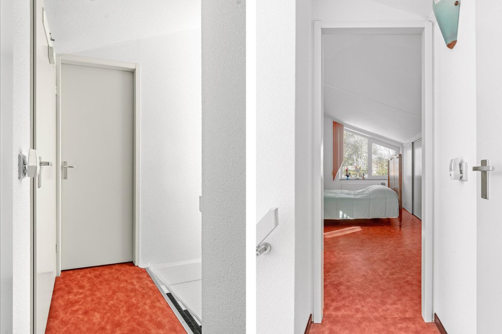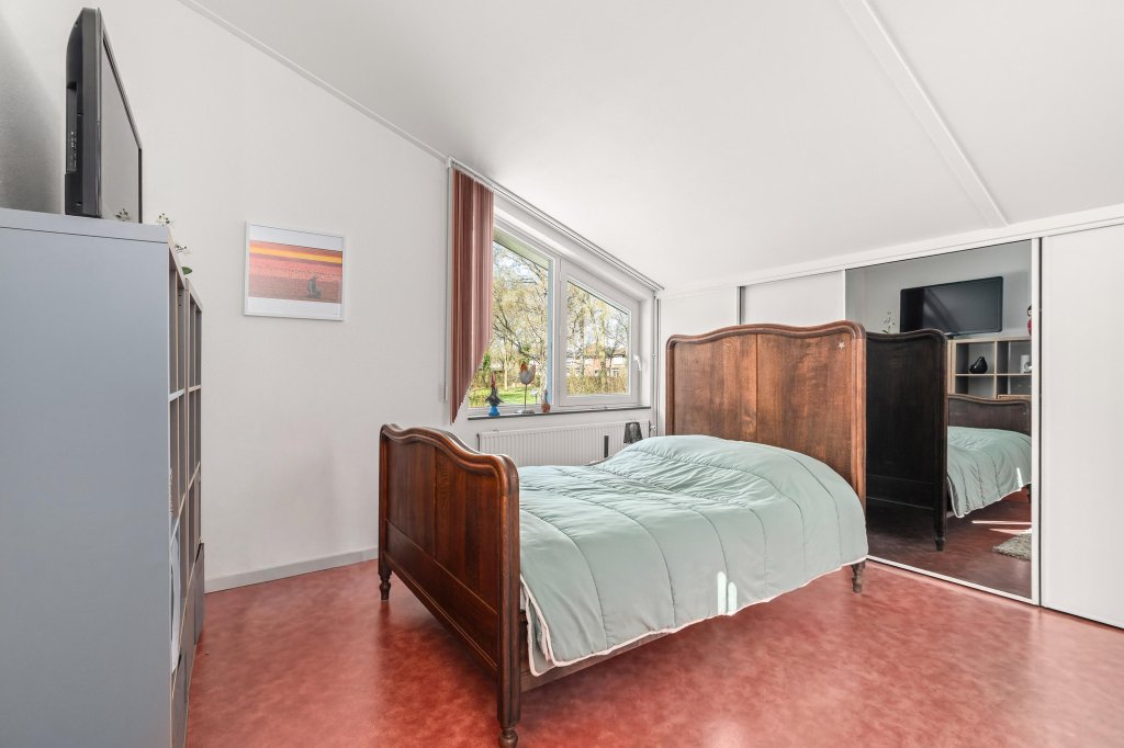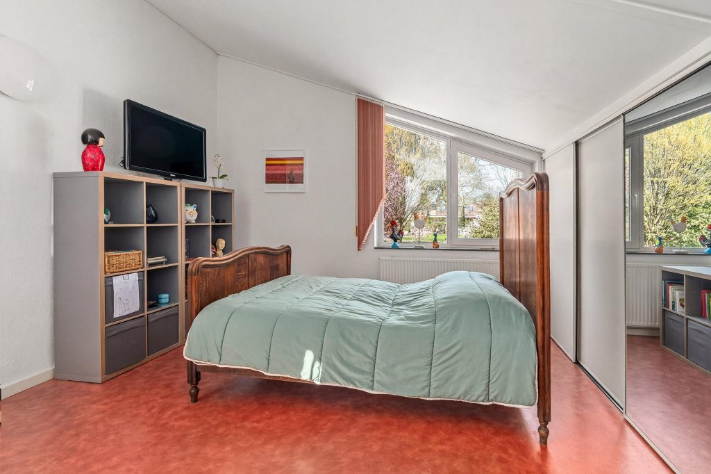 De overloop biedt toegang tot twee ruime slaapkamers, beide voorzien van een nette Novilon loer en vaste kasten. Daarnaast is er een ruime bergkast met opstelling van de c.v.-ketel.