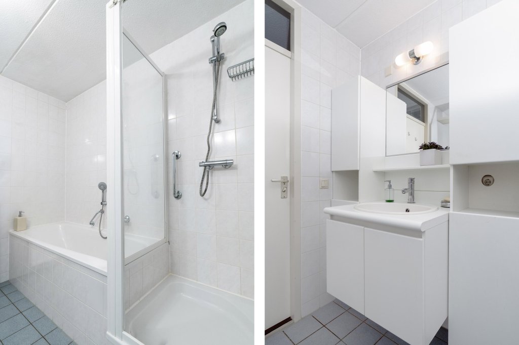 Via de gang is de badkamer bereikbaar welke is voorzien van ligbad, separate douche, wastafel en douche.