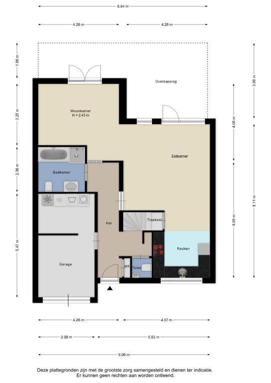 Alle door ons kantoor verstrekte informatie omtrent onroerende zaken, moet beschouwd worden als een uitnodiging om in onderhandeling te treden, en is geheel vrijblijvend! Alle vermelde maten en afmetingen zijn slechts bij benadering. Aan deze beperkte informatie kunnen geen rechten worden ontleend. Indien in enige documentatie of op enige website informatie staat die niet overeen komt met de werkelijkheid, dan geldt de feitelijke situatie waarin de woning zich bevindt, zoals koper deze tijdens de bezichtiging heeft kunnen waarnemen, en wordt de woning in deze feitelijke situatie/staat verkocht. Een (eventueel) bijgevoegde plattegrond dient uitsluitend als globale indicatie/visualisatie. Hieraan kunnen uitdrukkelijk geen rechten worden ontleend.