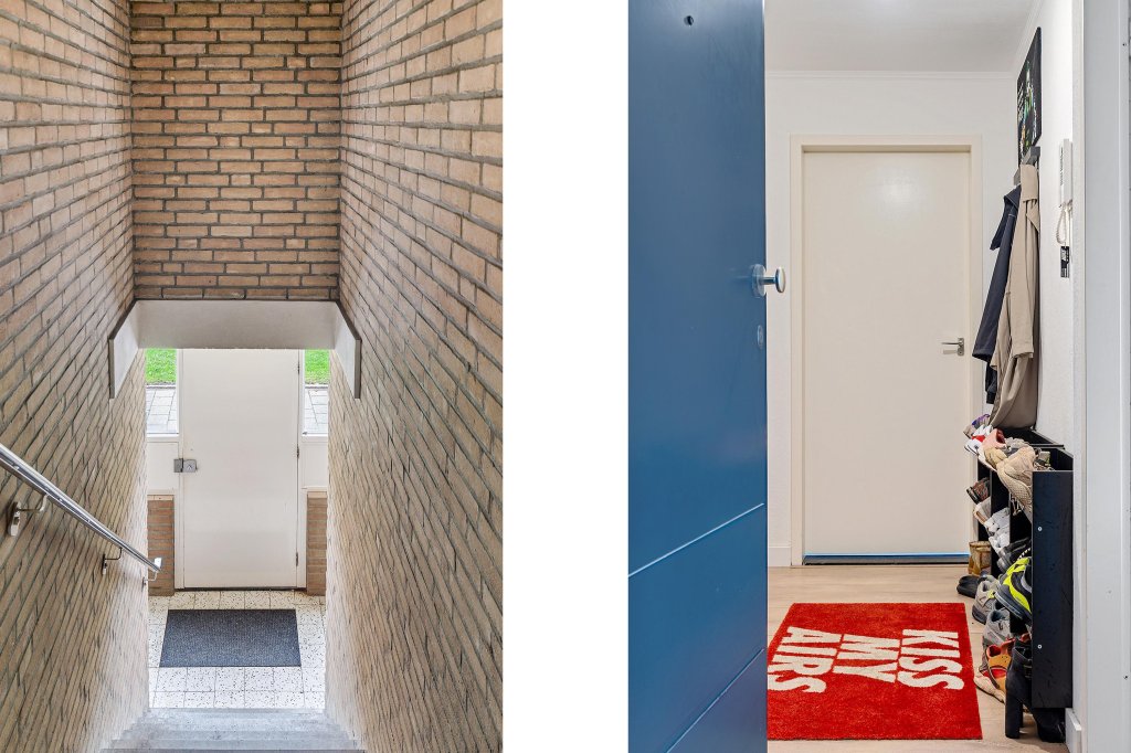 De centrale entree beschikt over een bellentableau, brievenbussen en een trappenhuis.
