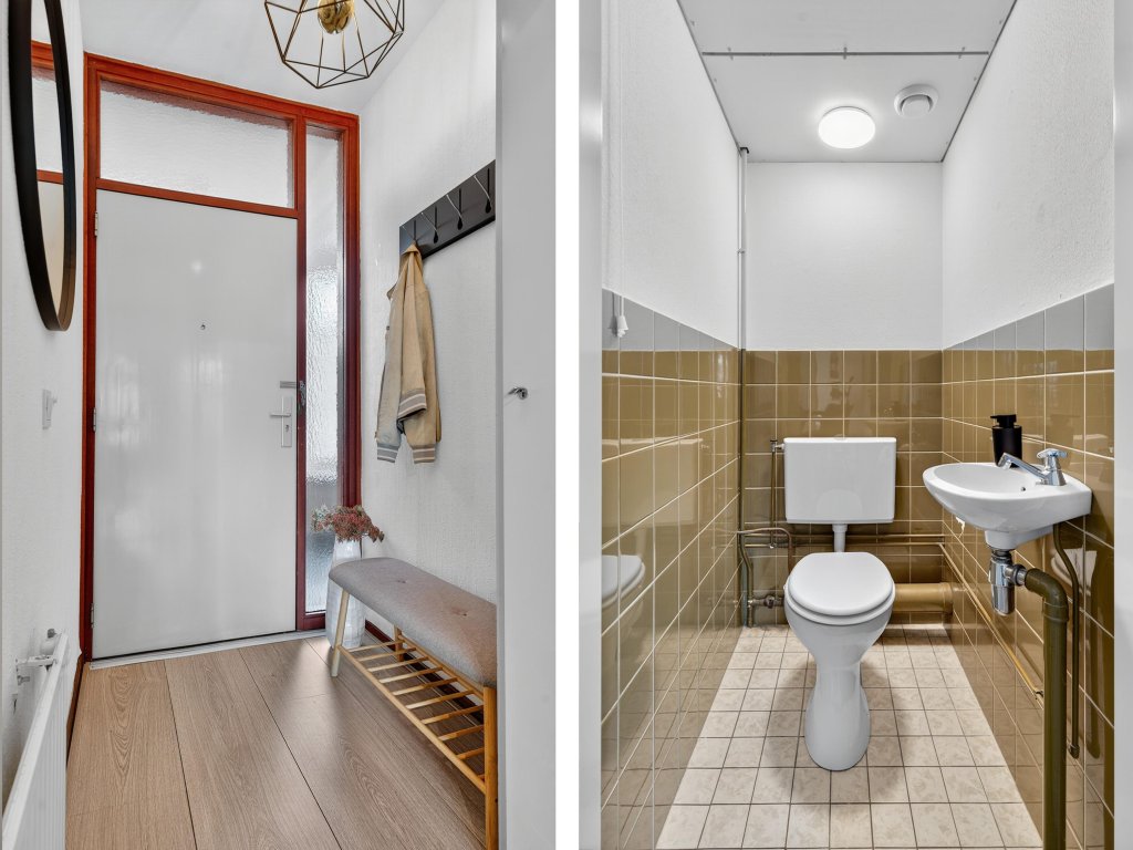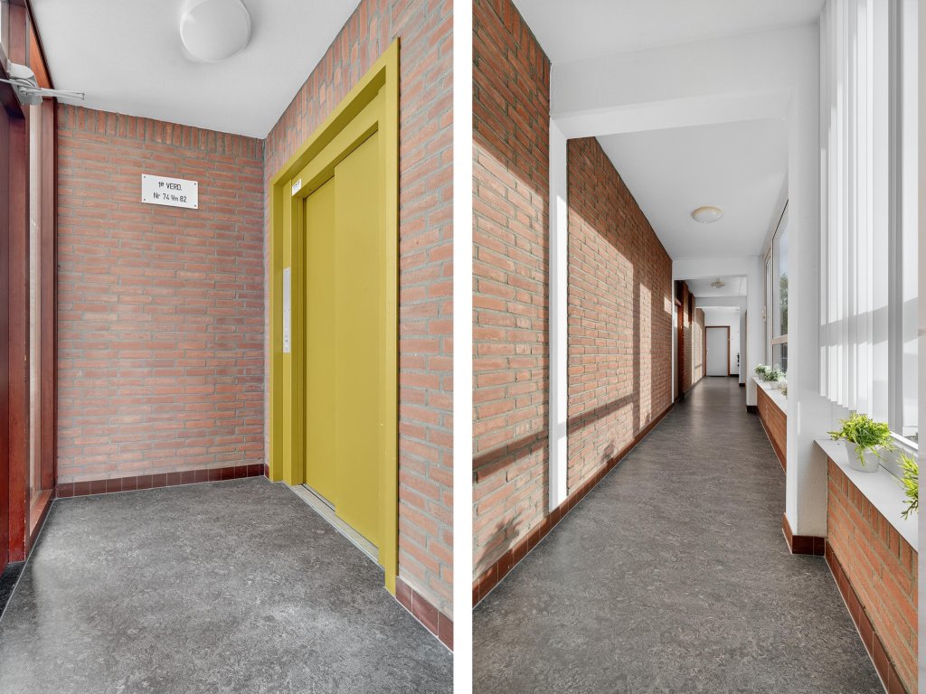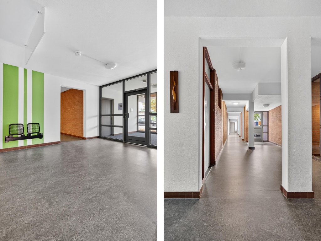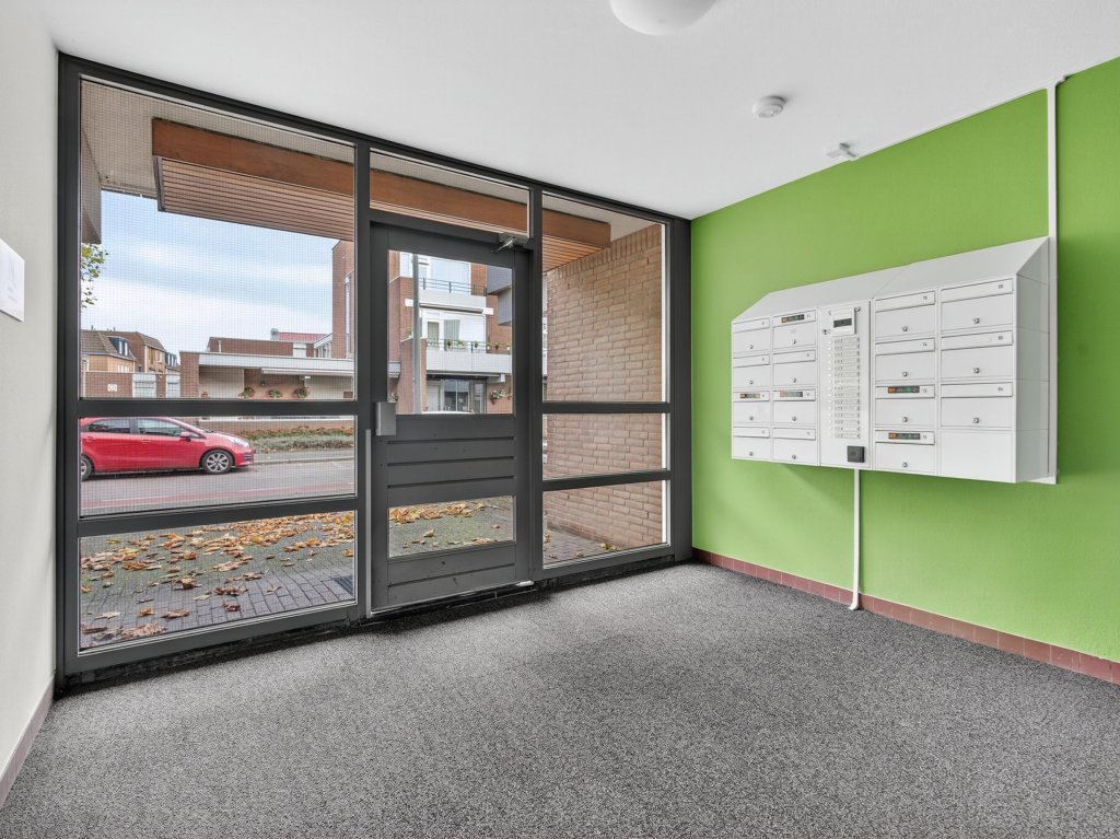 Bij aankomst betreed je de centrale entree met bellentableau en brievenbussen. Vanuit de afgesloten hal zijn zowel het trappenhuis als de lift bereikbaar.