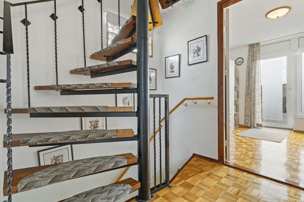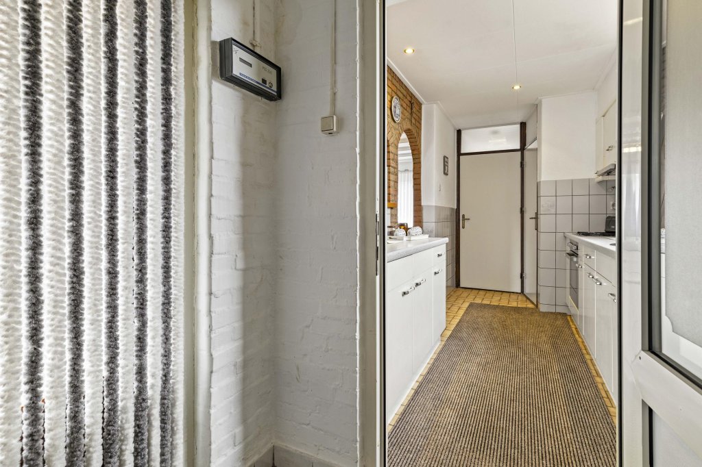 Hal/entree met trap naar de verdieping, meterkast, toiletruimte met zwevend closet en fonteintje.