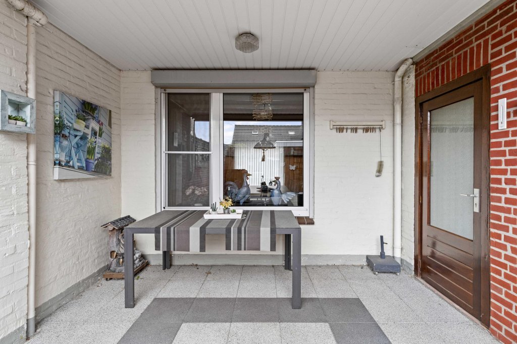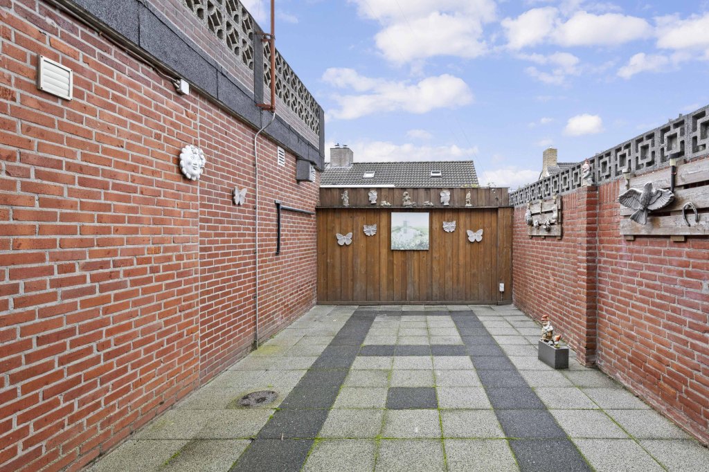 houten poort. Omsloten, onderhoudsvriendelijke tuin met terrasoverkapping voorzien van zonnescherm en ruime