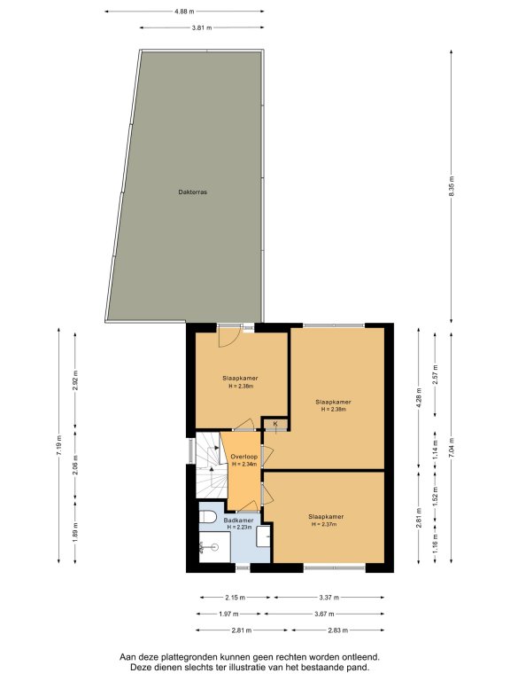Slaapkamer 3: ca. 6 m2 met toegang tot riant dakterras.