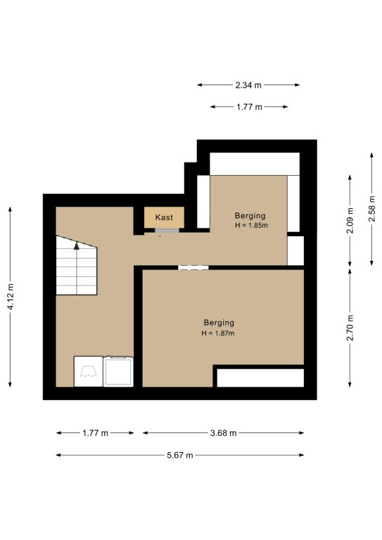 bergkasten en dakraam. Tevens standplaats c.v.-installatie Nefit Ecomline HR (eigendom).