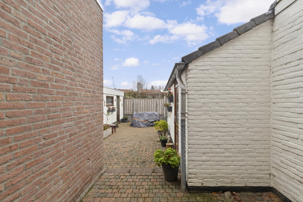 De onderhoudsvriendelijke achtertuin is volledig betegeld en beschikt over een kleine border voor wat groen. De tuin biedt veel privacy en is voorzien van een praktische buitenberging.