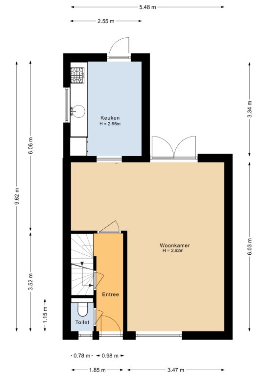 - Alle afmetingen zijn terug te vinden op de plattegronden.