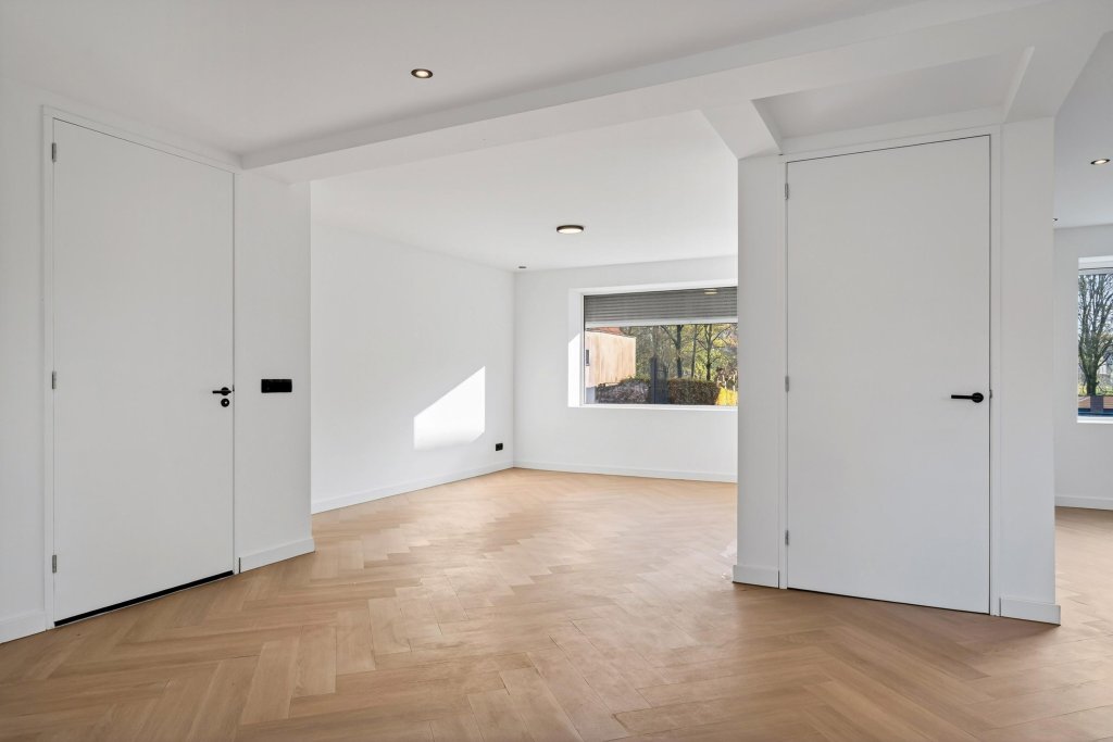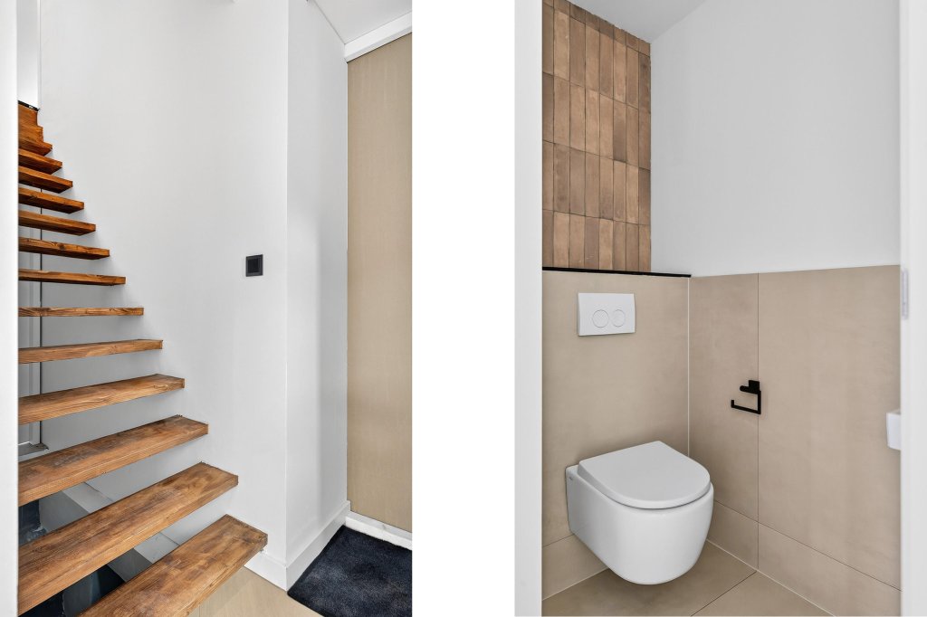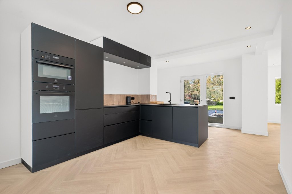 Bij binnenkomst betreedt u de hal met meterkast. Vanuit hier loopt u door naar de splinternieuwe, moderne keuken, uitgerust met alle gewenste inbouwapparatuur. Dankzij de openslaande deuren geniet u van een prachtig zicht op de uitgestrekte achtertuin en stroomt het daglicht rijkelijk binnen. Aangrenzend ligt de gezellige woonkamer, een fijne plek voor ontspanning en samenzijn. Op de begane grond bevindt zich tevens een modern toilet met hangcloset en fonteintje, evenals een praktische bijkeuken met directe toegang tot de tuin — ideaal voor het opbergen van voorraad of het plaatsen van apparatuur.