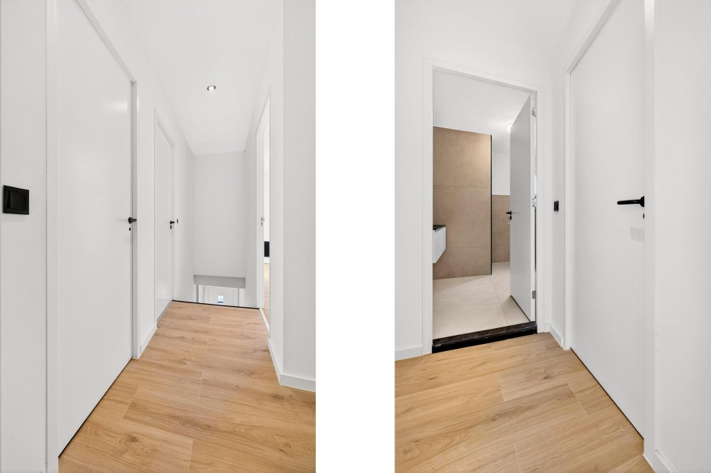 Via de vaste trap bereikt u de overloop die toegang biedt tot drie ruime slaapkamers, stuk voor stuk licht, comfortabel en goed indeelbaar. De luxe badkamer is uitgerust met een heerlijk ligbad, een dubbele wastafel, een royale inloopdouche en een tweede toilet.