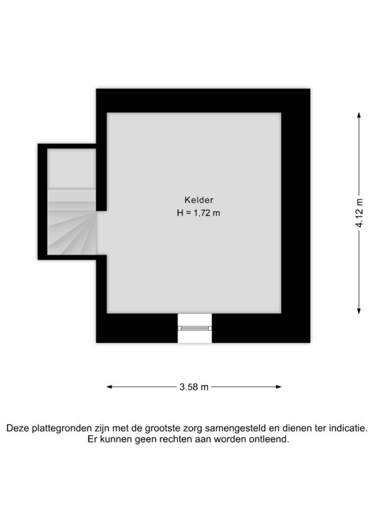De woning beschikt over een ruime kelder (ca. 4.12 x 3.58 m), die perfect dienst kan doen als provisieruimte, hobbyruimte of opslag.