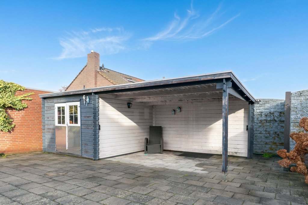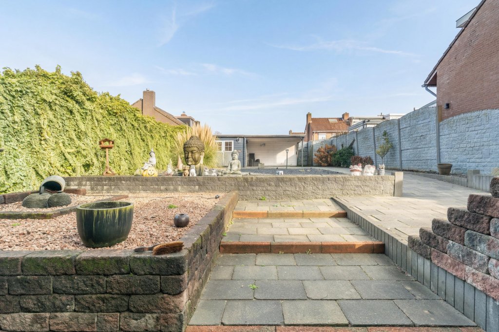 De onderhoudsvriendelijke, grotendeels beklinkerde tuin is omsloten en biedt veel privacy. Met een praktische berging/overkapping is het hier heerlijk vertoeven, ongeacht het seizoen. Een fijne buitenruimte waar je in alle rust kunt genieten.
