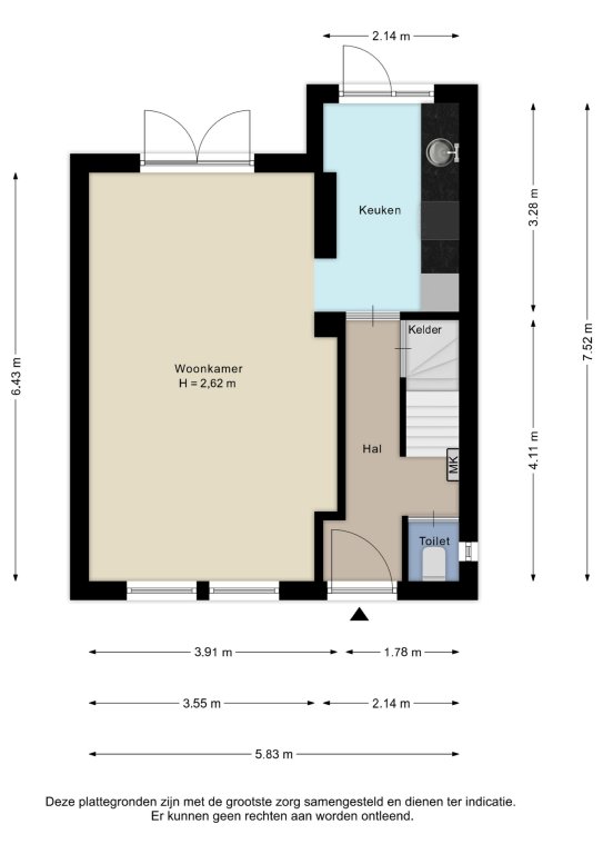 Alle door ons kantoor verstrekte informatie omtrent onroerende zaken, moet beschouwd worden als een uitnodiging om in onderhandeling te treden, en is geheel vrijblijvend! Alle vermelde maten en afmetingen zijn slechts bij benadering. Aan deze beperkte info kunnen geen rechten worden ontleend. Indien in enige documentatie of op enige website informatie staat die niet overeen komt met de werkelijkheid, dan geldt de feitelijke situatie waarin de woning zich bevindt, zoals koper deze tijdens de bezichtiging heeft kunnen waarnemen, en wordt de woning in deze feitelijke situatie/staat verkocht. Een (eventueel) bijgevoegde plattegrond dient uitsluitend als globale indicatie/visualisatie. Hieraan kunnen uitdrukkelijk geen rechten worden ontleend.