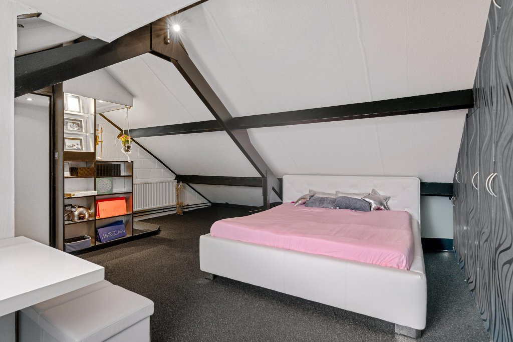 De tweede verdieping biedt een extra slaapkamer met wastafel en kastenwand. Vanuit deze slaapkamer is de cv-ruimte bereikbaar, waar de cv-ketel zich bevindt. Ook deze verdieping is voorzien van een grindvloer en kan dienen als extra woonruimte of slaapkamer naar wens.