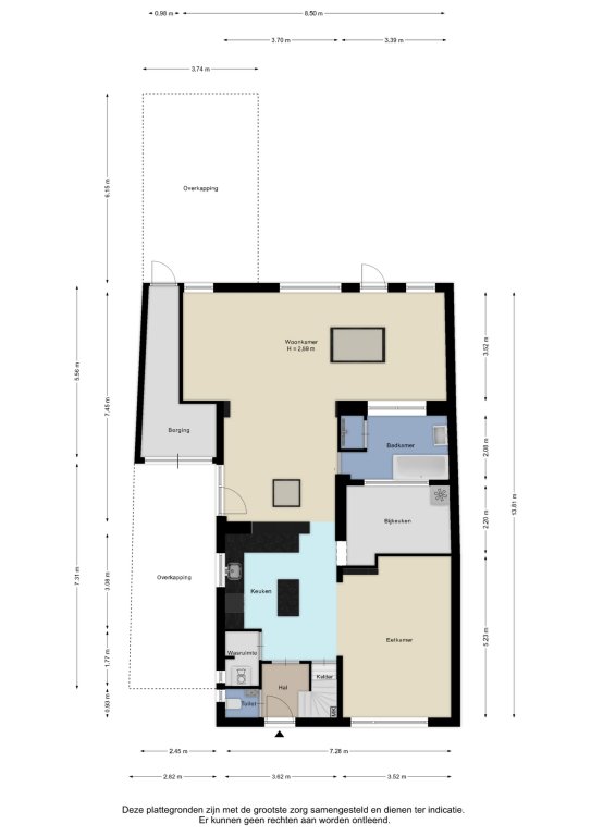 Alle door ons kantoor verstrekte informatie omtrent onroerende zaken, moet beschouwd worden als een uitnodiging om in onderhandeling te treden, en is geheel vrijblijvend! Alle vermelde maten en afmetingen zijn slechts bij benadering. Aan deze beperkte info kunnen geen rechten worden ontleend. Indien in enige documentatie of op enige website informatie staat die niet overeen komt met de werkelijkheid, dan geldt de feitelijke situatie waarin de woning zich bevindt, zoals koper deze tijdens de bezichtiging heeft kunnen waarnemen, en wordt de woning in deze feitelijke situatie/staat verkocht. Een (eventueel) bijgevoegde plattegrond dient uitsluitend als globale indicatie/visualisatie. Hieraan kunnen uitdrukkelijk geen rechten worden ontleend.