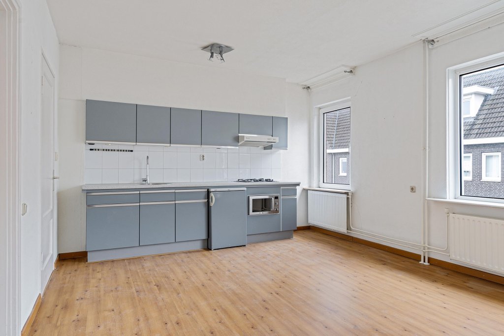 Vanuit de woonkamer is er directe toegang tot de keuken.