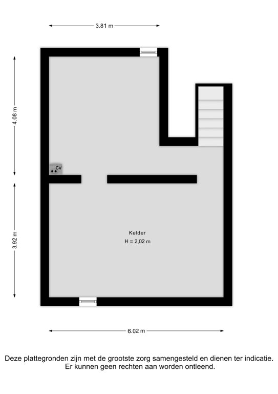 Het souterrain biedt extra bergruimte en is praktisch te gebruiken als voorraadruimte of hobbyruimte. Hier bevindt zich tevens de cv-installatie.