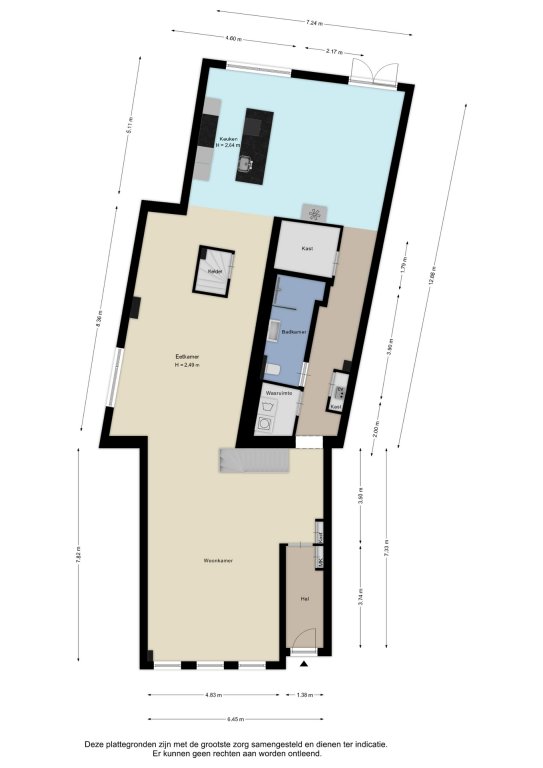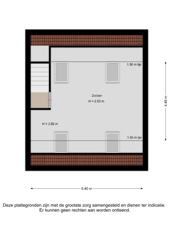 Alle door ons kantoor verstrekte informatie omtrent onroerende zaken, moet beschouwd worden als een uitnodiging om in onderhandeling te treden, en is geheel vrijblijvend! Alle vermelde maten en afmetingen zijn slechts bij benadering. Aan deze beperkte informatie kunnen geen rechten worden ontleend. Indien in enige documentatie of op enige website informatie staat die niet overeen komt met de werkelijkheid, dan geldt de feitelijke situatie waarin de woning zich bevindt, zoals koper deze tijdens de bezichtiging heeft kunnen waarnemen, en wordt de woning in deze feitelijke situatie/staat verkocht. Een (eventueel) bijgevoegde plattegrond dient uitsluitend als globale indicatie/visualisatie. Hieraan kunnen uitdrukkelijk geen rechten worden ontleend.