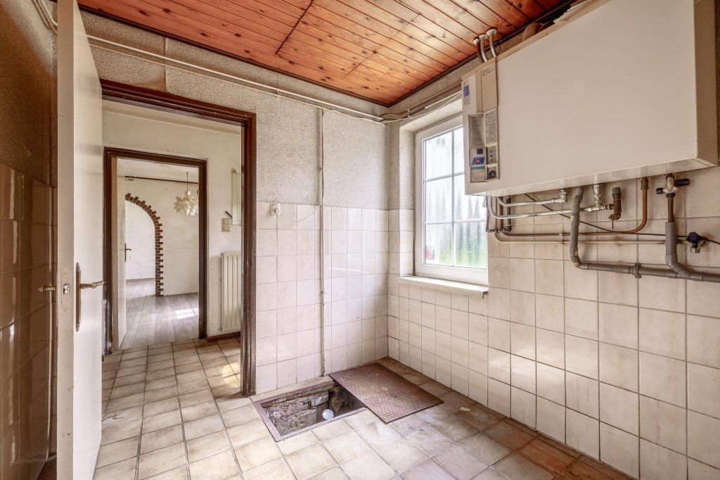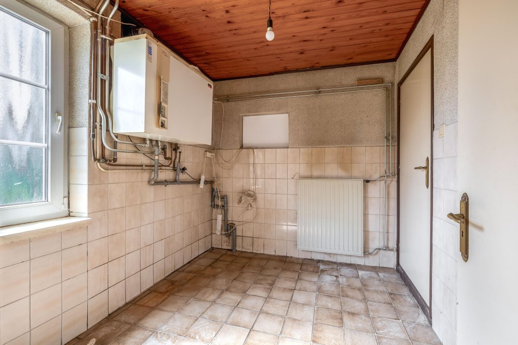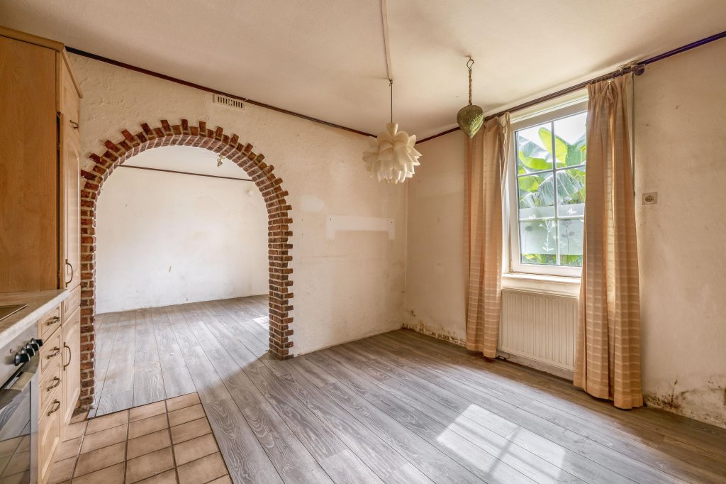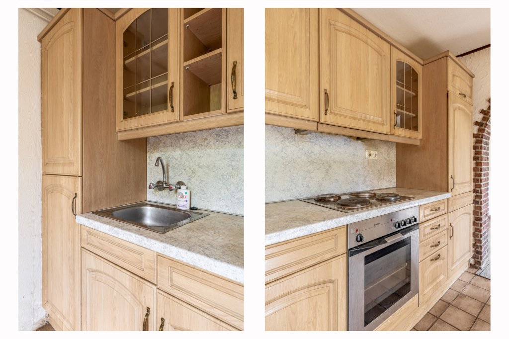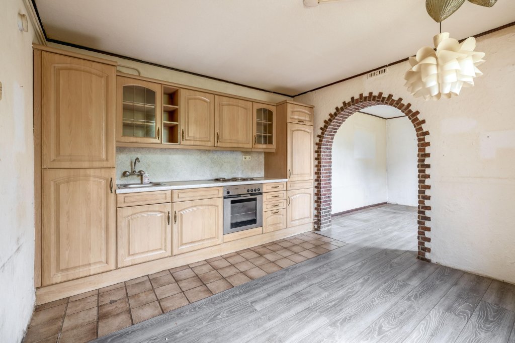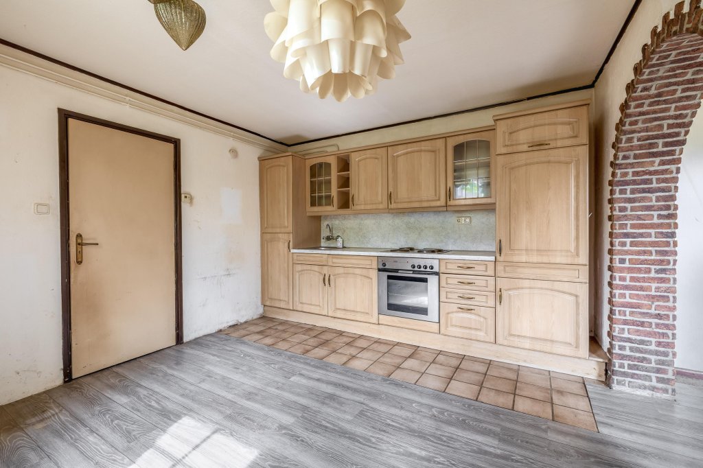 Via de entreehal met garderobe en trappenhuis kom je binnen in deze woning. Vanuit hier zijn zowel de leefkeuken als de bijkeuken bereikbaar. De leefkeuken is voorzien van een rechte keukenopstelling met diverse inbouwapparatuur, waaronder afzuiging, elektrische kookplaat, koelkast en oven. Er is een open verbinding naar de woonkamer, waardoor een gezellige leefruimte ontstaat. De bijkeuken biedt plaats voor witgoed, herbergt de CV-installatie en geeft toegang tot een vliering. Vanuit de bijkeuken is ook de eenvoudige, geheel betegelde badkamer bereikbaar met wastafelmeubel, douchecabine en toilet.