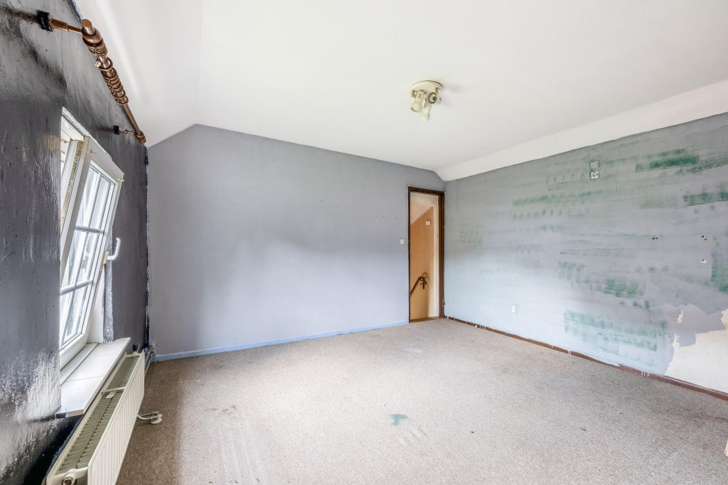De verdieping heeft een houten vloer met vloerbedekking en bestaat uit een doorloopslaapkamer en een tweede slaapkamer. Vanuit deze laatste kamer is via een mangat nog een extra vliering bereikbaar.
