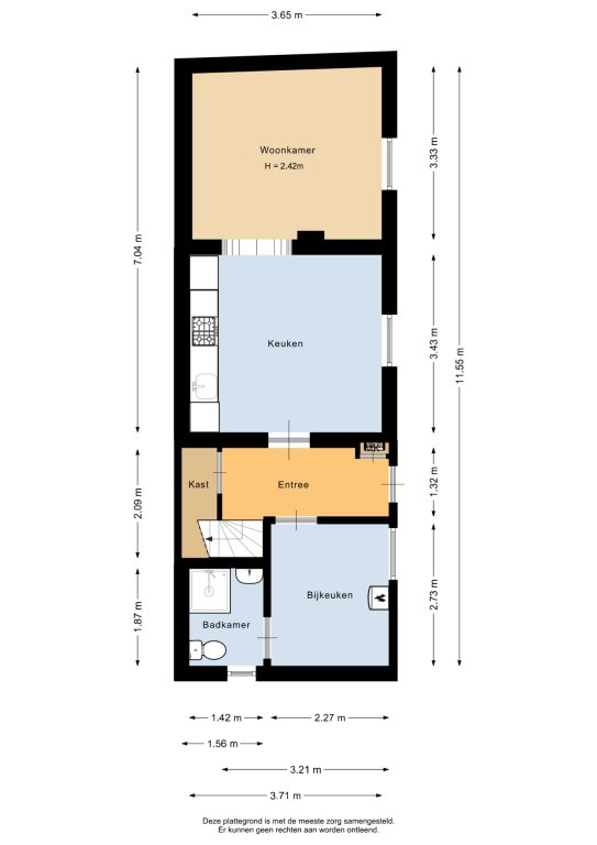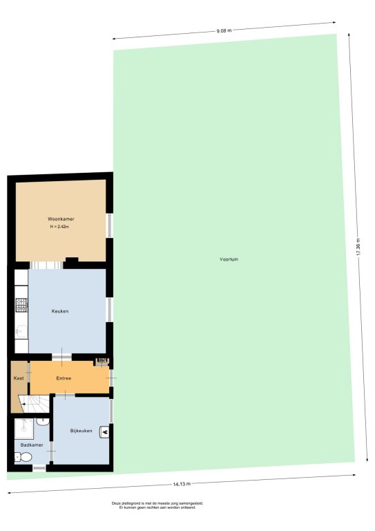 Alle door ons kantoor verstrekte informatie omtrent onroerende zaken, moet beschouwd worden als een uitnodiging om in onderhandeling te treden, en is geheel vrijblijvend! Alle vermelde maten en afmetingen zijn slechts bij benadering. Aan deze beperkte info kunnen geen rechten worden ontleend. Indien in enige documentatie of op enige website informatie staat die niet overeen komt met de werkelijkheid, dan geldt de feitelijke situatie waarin de woning zich bevindt, zoals koper deze tijdens de bezichtiging heeft kunnen waarnemen, en wordt de woning in deze feitelijke situatie/staat verkocht. Een (eventueel) bijgevoegde plattegrond dient uitsluitend als globale indicatie/visualisatie. Hieraan kunnen uitdrukkelijk geen rechten worden ontleend.