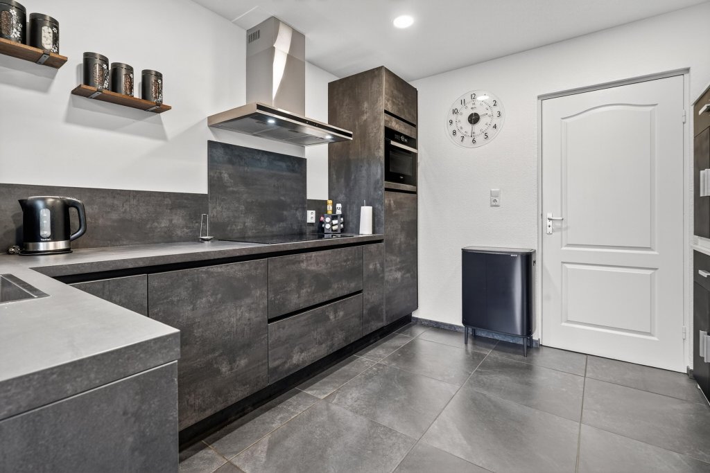 De moderne keuken is uitgerust met diverse inbouwapparatuur, waaronder een inductiekookplaat, combi-magnetron/oven, koelkast en vaatwasser — ideaal voor de kookliefhebber. Vanuit de keuken bereikt u de handige bijkeuken, voorzien van een extra keukenblok en een eigen combi-magnetron/oven. Een fijne praktische ruimte voor extra opslag of het bereiden van maaltijden.