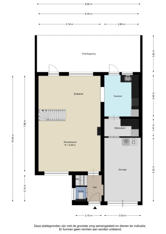 Alle door ons kantoor verstrekte informatie omtrent onroerende zaken, moet beschouwd worden als een uitnodiging om in onderhandeling te treden, en is geheel vrijblijvend! Alle vermelde maten en afmetingen zijn slechts bij benadering. Aan deze beperkte info kunnen geen rechten worden ontleend. Indien in enige documentatie of op enige website informatie staat die niet overeen komt met de werkelijkheid, dan geldt de feitelijke situatie waarin de woning zich bevindt, zoals koper deze tijdens de bezichtiging heeft kunnen waarnemen, en wordt de woning in deze feitelijke situatie/staat verkocht. Een (eventueel) bijgevoegde plattegrond dient uitsluitend als globale indicatie/visualisatie. Hieraan kunnen uitdrukkelijk geen rechten worden ontleend.
