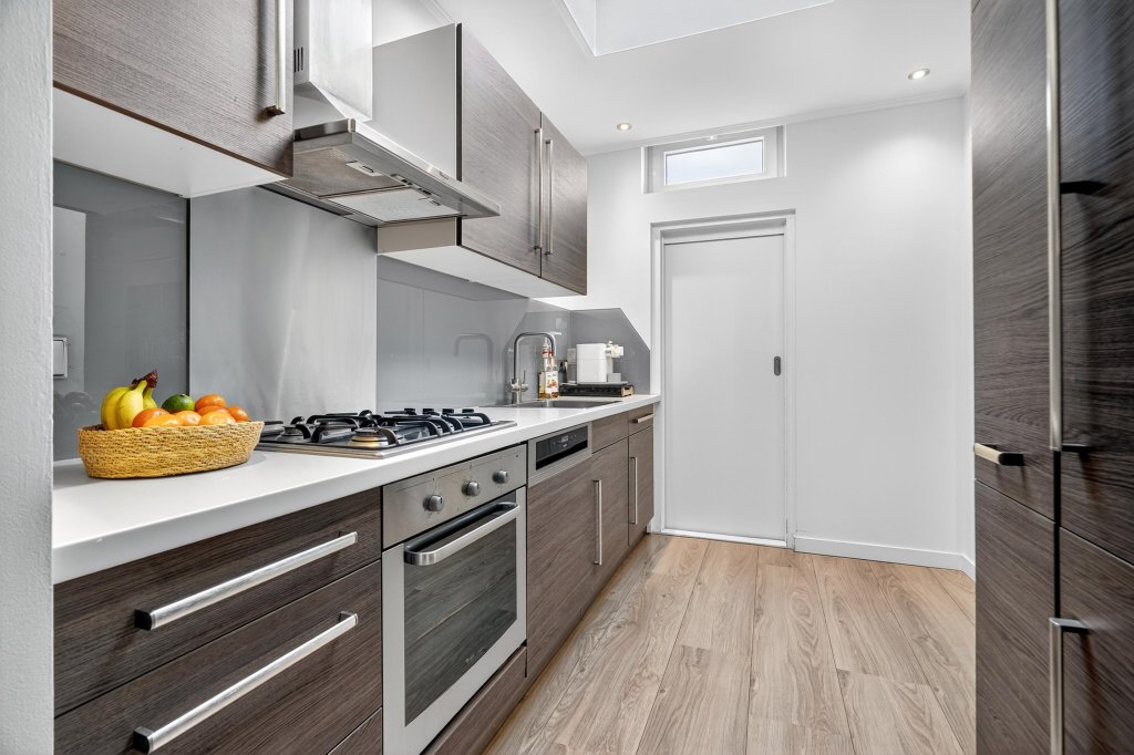 Bij binnenkomst stap je in de hal met meterkast, die toegang biedt tot het toilet en de woonkamer. De woonkamer heeft een laminaatvloer, kastenwand en veel lichtinval. Vanuit de woonkamer is de open keuken bereikbaar welke praktisch is ingericht en voorzien van een 4-pits gasfornuis, oven, afzuigkap en koelkast. Vanuit de keuken heb je toegang tot een handige opbergruimte met de wasmachineaansluiting en toegang tot de tuin.