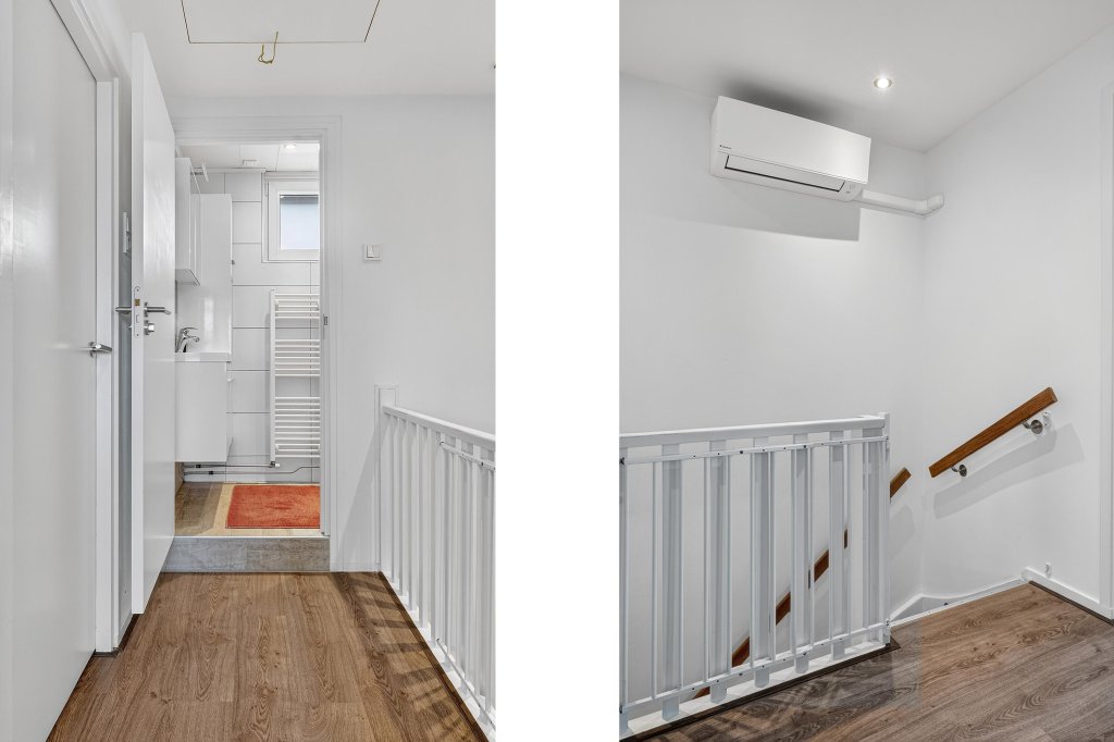 Vanaf de overloop zijn drie slaapkamers en de badkamer bereikbaar: