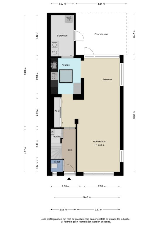 Alle door ons kantoor verstrekte informatie omtrent onroerende zaken, moet beschouwd worden als een uitnodiging om in onderhandeling te treden, en is geheel vrijblijvend! Alle vermelde maten en afmetingen zijn slechts bij benadering. Aan deze beperkte info kunnen geen rechten worden ontleend. Indien in enige documentatie of op enige website informatie staat die niet overeen komt met de werkelijkheid, dan geldt de feitelijke situatie waarin de woning zich bevindt, zoals koper deze tijdens de bezichtiging heeft kunnen waarnemen, en wordt de woning in deze feitelijke situatie/staat verkocht. Een (eventueel) bijgevoegde plattegrond dient uitsluitend als globale indicatie/visualisatie. Hieraan kunnen uitdrukkelijk geen rechten worden ontleend.