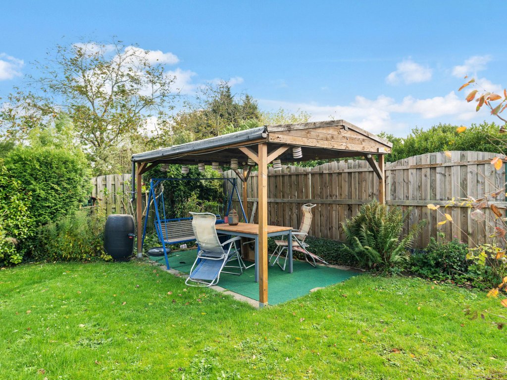De royale tuin is een ware verrassing! Met veel groen, een overkapping met betegeld zitgedeelte en een praktische berging is dit een heerlijke plek om te ontspannen of te tuinieren. Via de overkapping is bovendien de berging direct te betreden, wat extra gemak biedt. De tuin is tevens bereikbaar via een poort aan de zijkant van de woning.