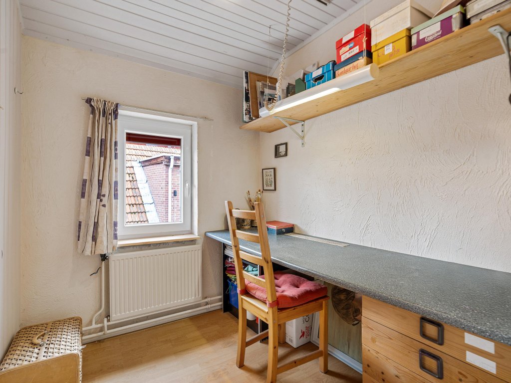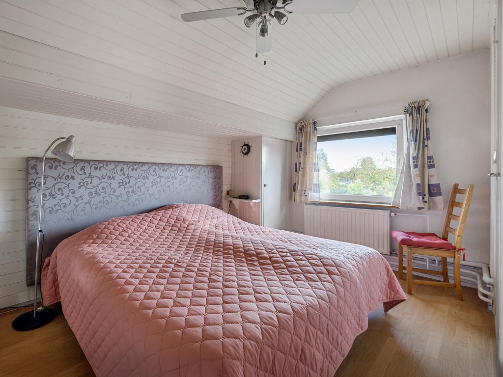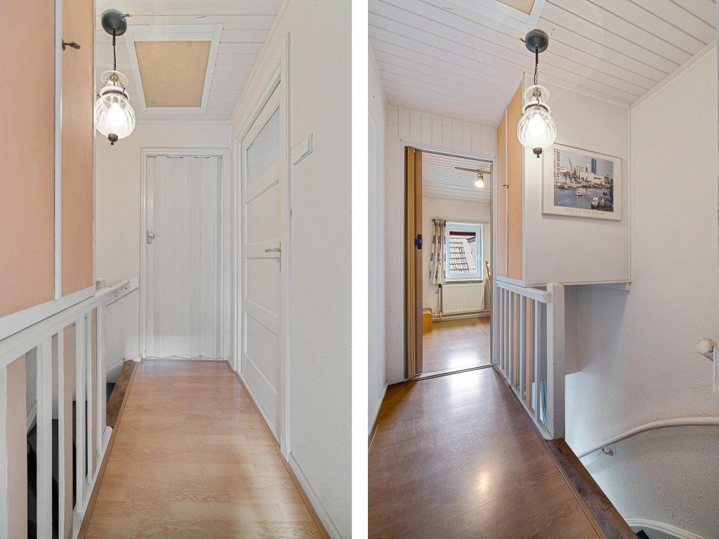 De overloop geeft toegang tot drie slaapkamers, de badkamer en een bergkast. Eén van de slaapkamers beschikt over een eigen toilet, terwijl een andere is voorzien van drie vaste kasten – ideaal voor extra opbergruimte. De gehele verdieping is afgewerkt met een nette laminaatvloer en voorzien van handmatige rolluiken.