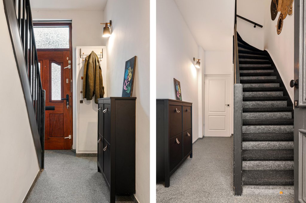 Via de entree komt u in de hal met vernieuwde meterkast en toegang tot de kelder en de eerste verdieping.