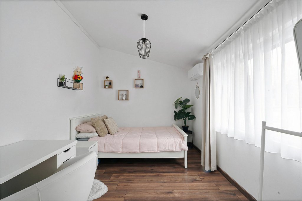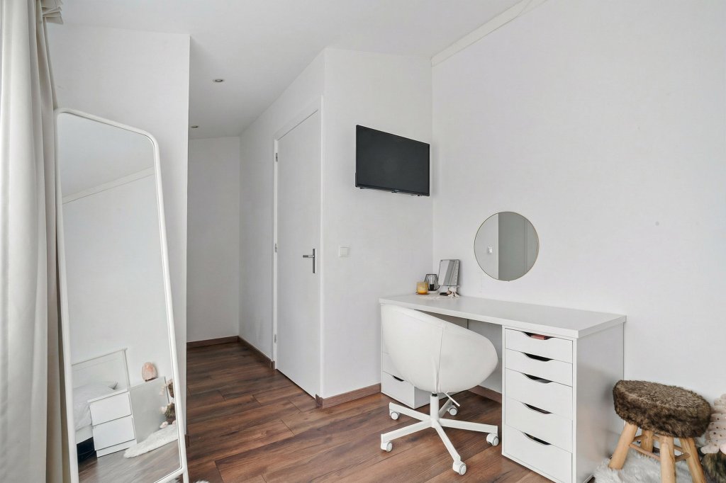 • De slaapkamer aan de achterzijde is voorzien van een praktische vaste kast;