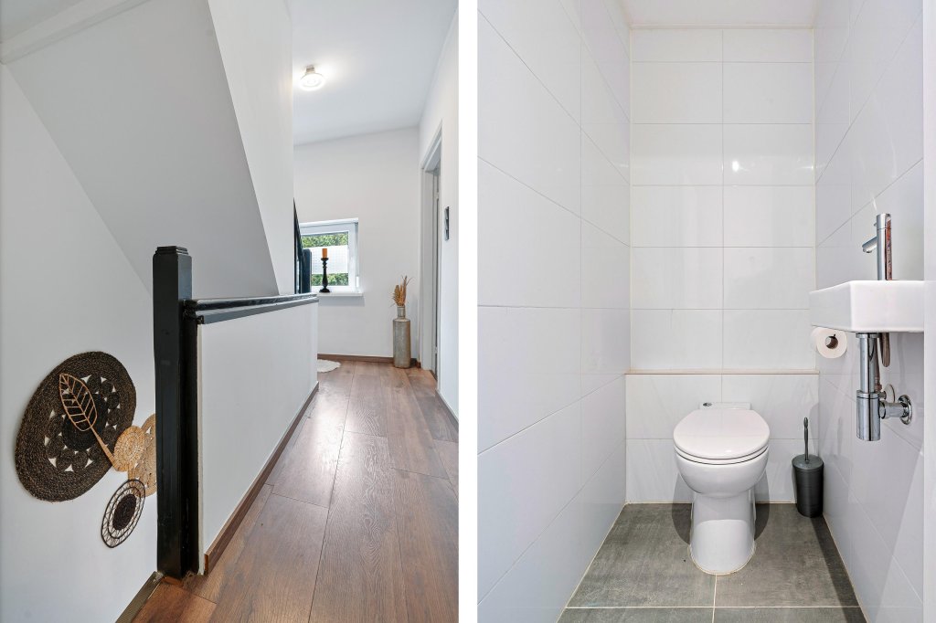 • Separate toiletruimte met staand toilet en fonteintje, bereikbaar via de overloop én via één van de slaapkamers.