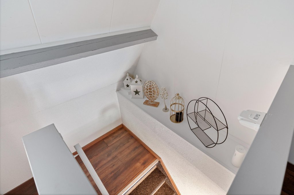 De overloop biedt toegang tot drie slaapkamers en een vaste trap naar de zolderverdieping.