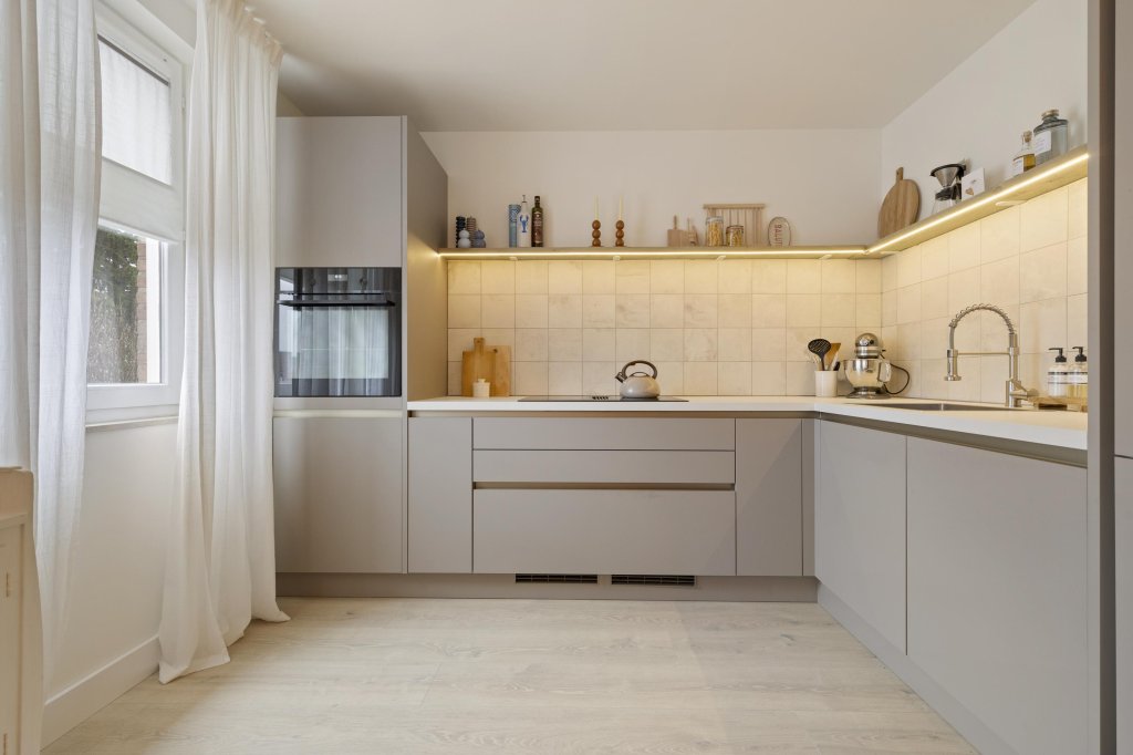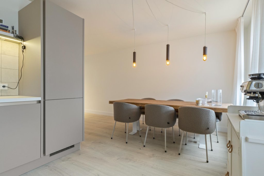 Deze woning is met veel zorg en oog voor detail vernieuwd. De royale woonkamer staat in open verbinding met de moderne keuken, wat zorgt voor een ruimtelijk en sociaal geheel. Grenzend aan de woonkamer vindt u het balkon, waar u heerlijk kunt genieten van de buitenlucht. De absolute eyecatcher is de prachtige nieuwe keuken, die is uitgerust met alle denkbare gemakken en hoogwaardige inbouwapparatuur. Of u nu een snelle maaltijd bereidt of uitgebreid wilt koken voor vrienden, deze keuken vormt het kloppende hart van de woning. De fantastische nieuwe badkamer straalt een hotelsfeer uit en is voorzien van modern tegelwerk en luxe sanitair, waaronder een luxe inloopdouche, badmeubel met spiegel en een toilet.