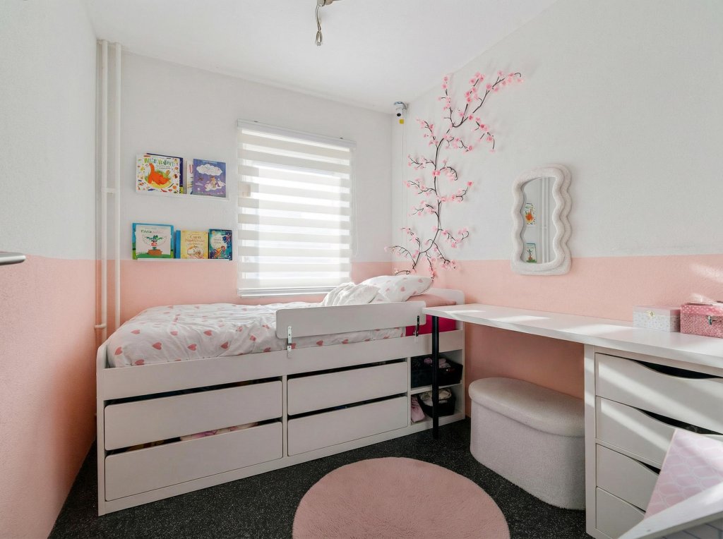 De tweede verdieping biedt een extra slaapkamer met dakkapel en bergruimte. Vanuit deze slaapkamer is de cv-ruimte bereikbaar, waar de cv-ketel zich bevindt. Ook deze verdieping is voorzien van een grindvloer en kan dienen als extra woonruimte of slaapkamer naar wens.