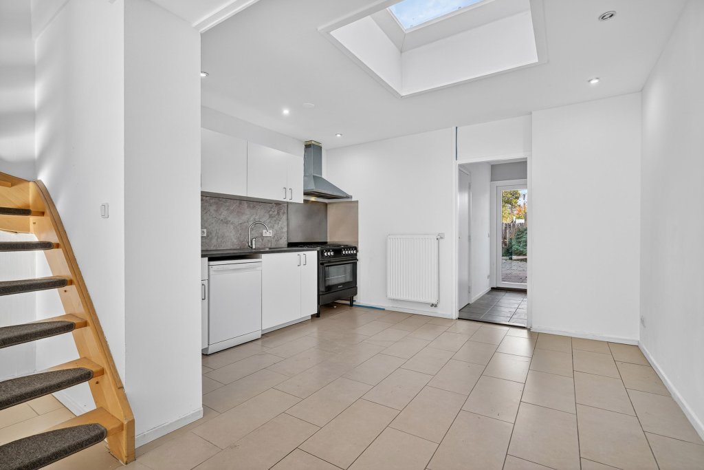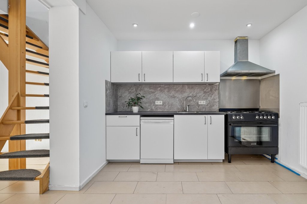 Bij binnenkomst stap je in de hal met meterkast, die toegang biedt tot de living. De ruime woonkamer heeft een tegelvloer, staat in open verbinding met de keuken en biedt toegang tot de kelderruimte. De open keuken bereikbaar welke praktisch is ingericht en voorzien van een 5-pits gasfornuis, oven, afzuigkap en vaatwasser. Vanuit de keuken is een gang bereikbaar met toegang tot de badkamer, apart toilet en wasruimte. De badkamer is voorzien van een douche, ligbad en wastafel. Vanuit de gang is de tuin bereikbaar via een loopdeur.