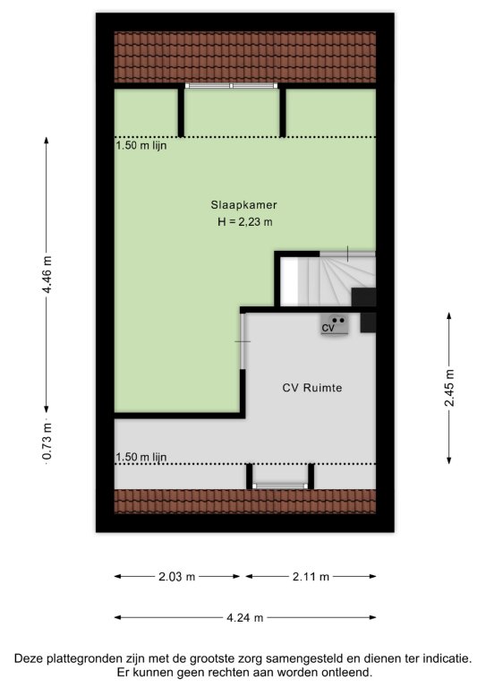 Via een vaste trap is de zolder te bereiken. Hier bevindt zich de derde slaapkamer met dakkapel en bergruimte met standplaats cv-installatie (eig.).